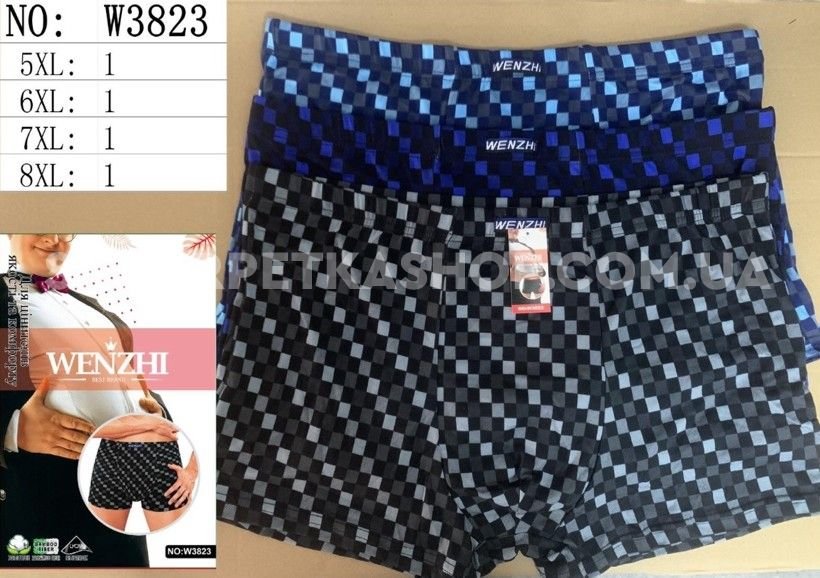 Боксери "Wenzhi" 3823 батал cotton+bamboo р. 5Хl, 6XL, 7XL, 8XL -ростовка 8 шт