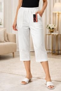 Бриджі жіночі "TIANLEFU" 98-2-О бавовна +льон з кишенями спереду та ззаду, р. Xl-(46-50) -(білі +вишивка)