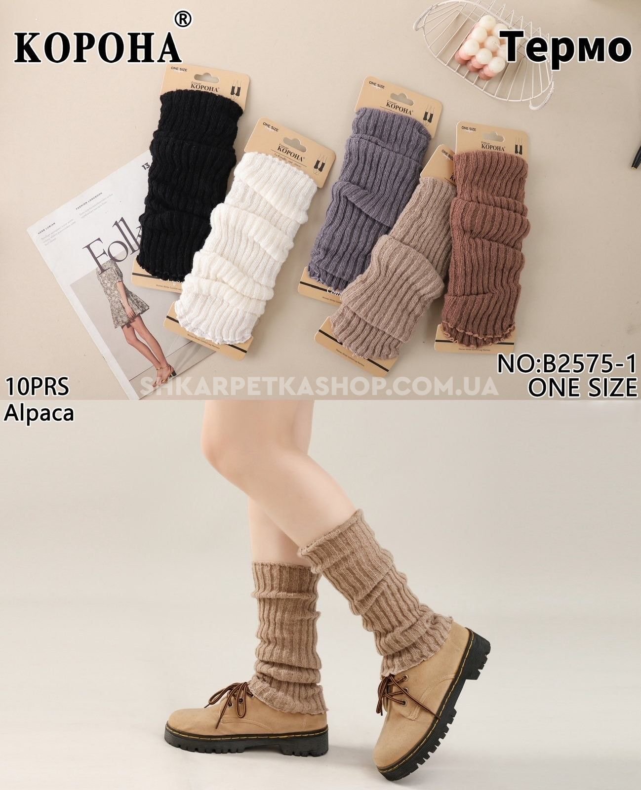 Гетри "КОРОНА" В-2575-1 альпака вовна, р. One Size -(асорті -в'язані в рельєфний рубчик) -уп. 10 шт
