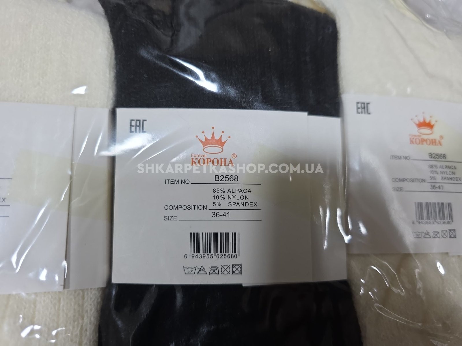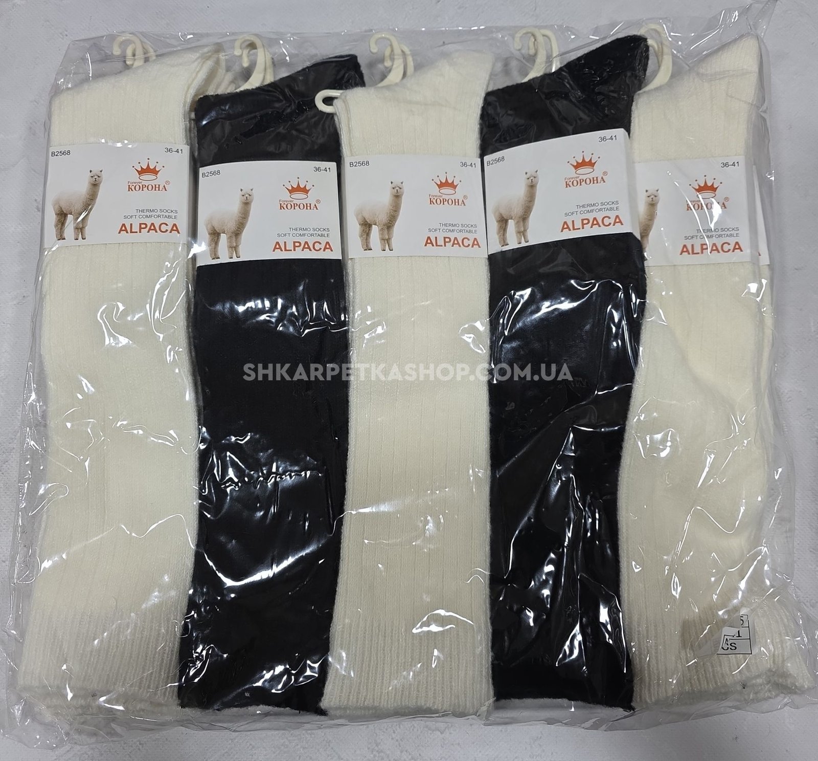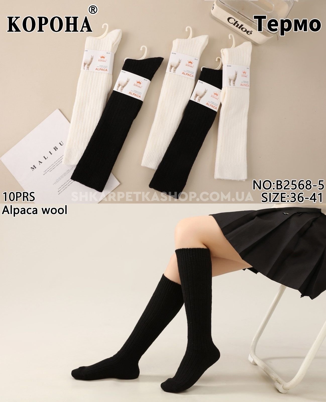 Гольфи /підколінки "Корона" B-2568-5 альпака вовна термо жіночі, р. 36-41 -(Чорні +молочні у рельєфний рубчик) -уп. 10 шт