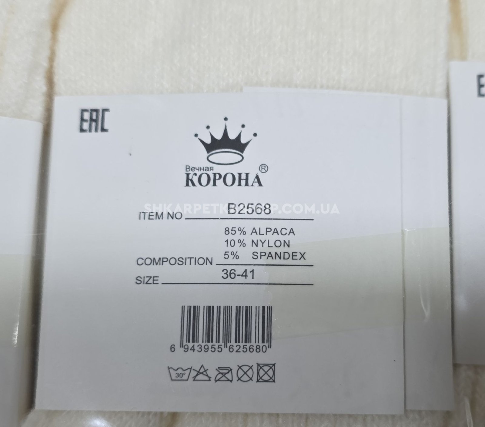 Гольфи /підколінки "Корона" B-2568-4 альпака вовна термо жіночі, р. 36-41 -(Молочні в мікс рельєфних візерунків) -уп. 10 шт