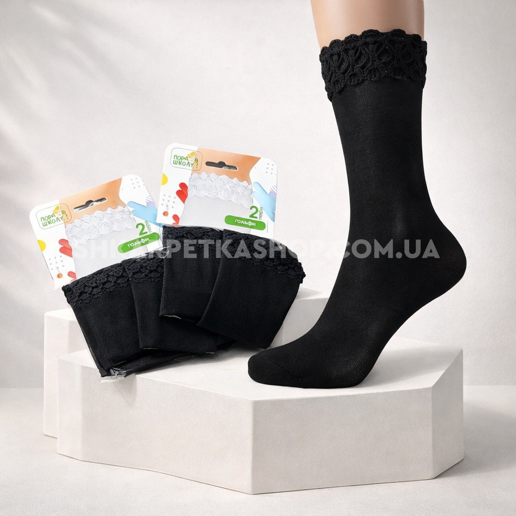 Гольфи дитячі /підліткові "Пора в школу" арт.0088-1 капронові в мікросіточку з рюшею -(гольфи чорні -в уп- 2 пари)