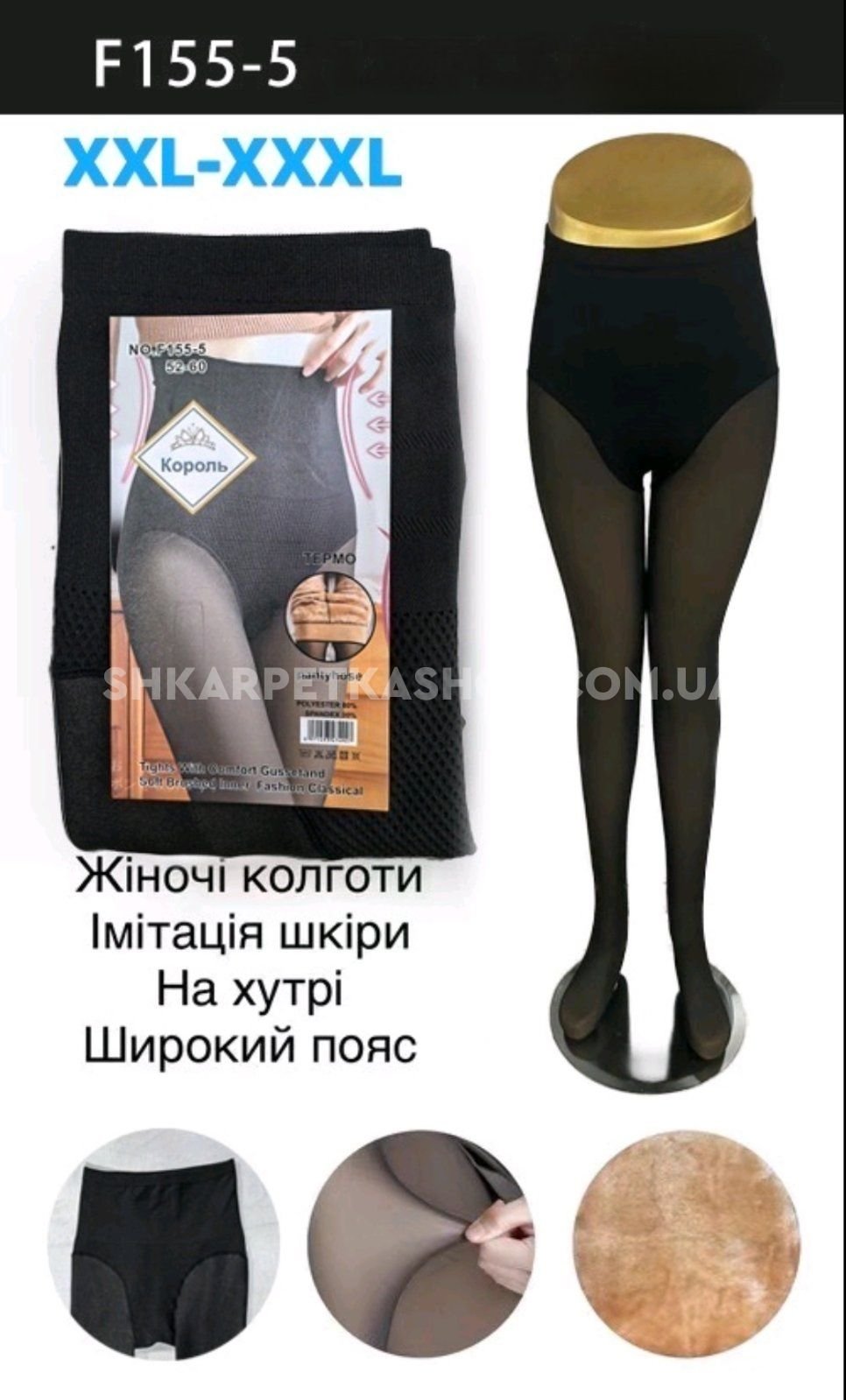 Колготки "Король" F-155-5 на хутрі до стопи з імітацією тонких та з ефектом голих ніжок, зверху підтримуючі трусики з ефектом push-up, р. 3XL-7XL -(50-54) -уп. 1 шт
