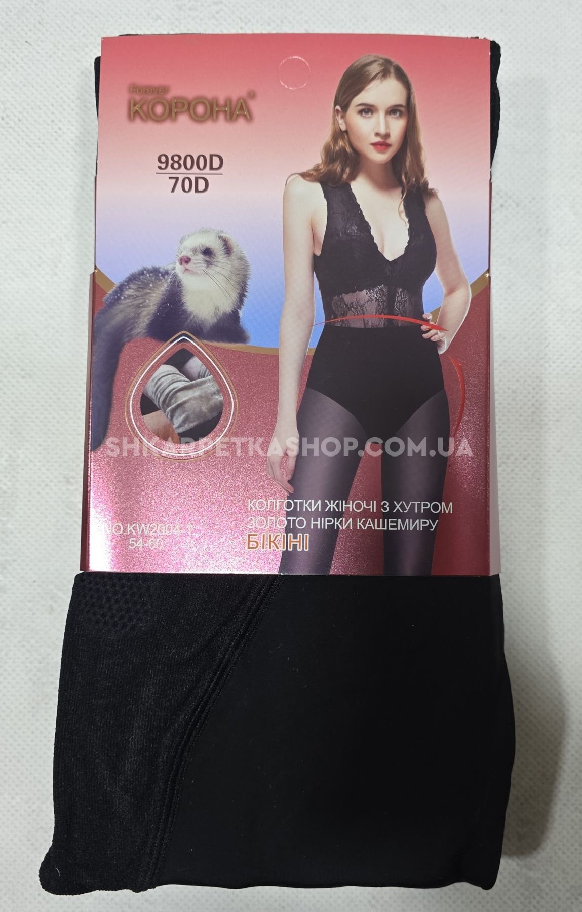 Колготки "Корона" KW-2004-1 /54-60 еластичні на товстому хутрі норки кашеміру до стопи, зверху підтримуючі трусики з ефектом push-up, на р. 50-54 -(чорні)