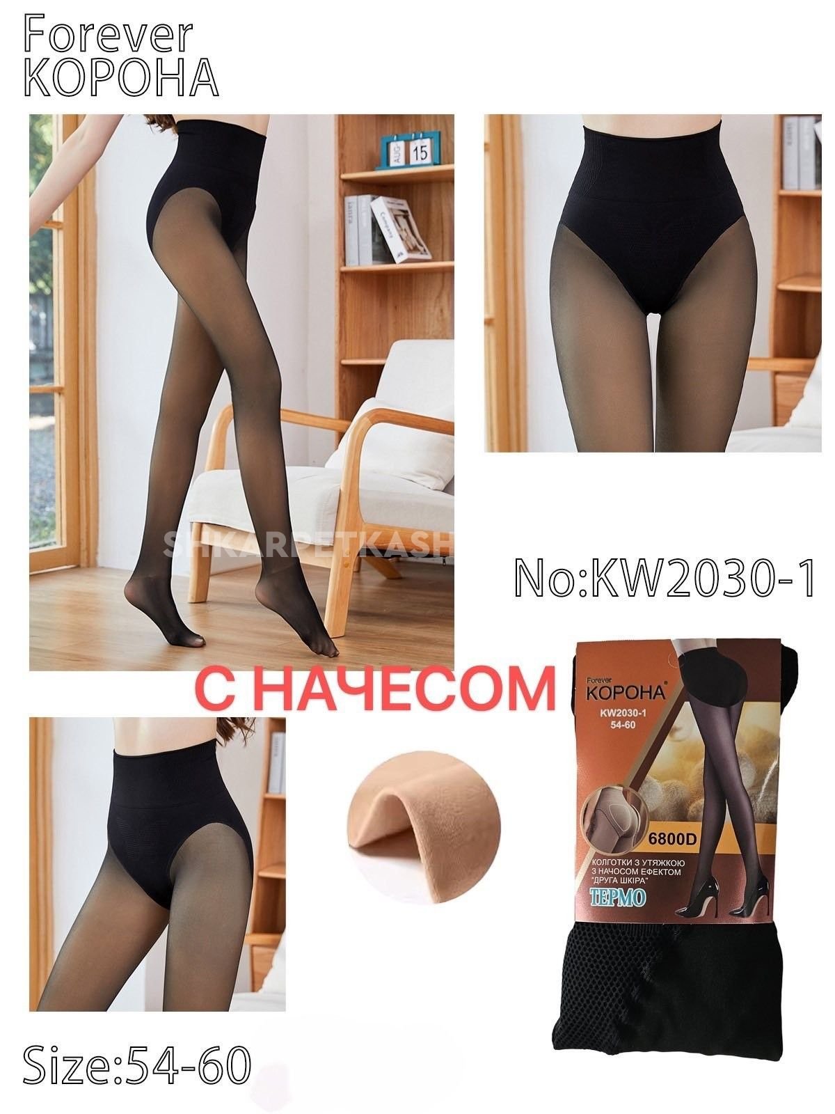 Колготки "Корона" KW-2030-1-Ф -(54-60) з начосом з імітацією капронових та з ефектом голих ніжок +зверху підтримуючі трусики з ефектом push-up -уп. 1 шт