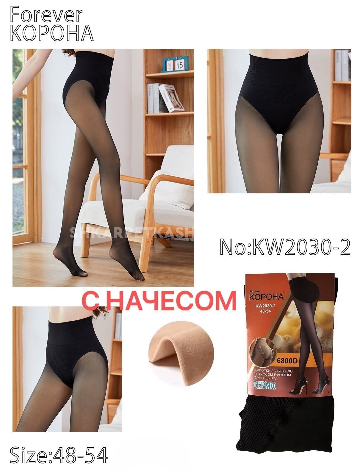 Колготки "Корона" KW-2030-2-Ф -(48-54) з начосом з імітацією капронових та з ефектом голих ніжок +зверху підтримуючі трусики з ефектом push-up -уп. 1 шт