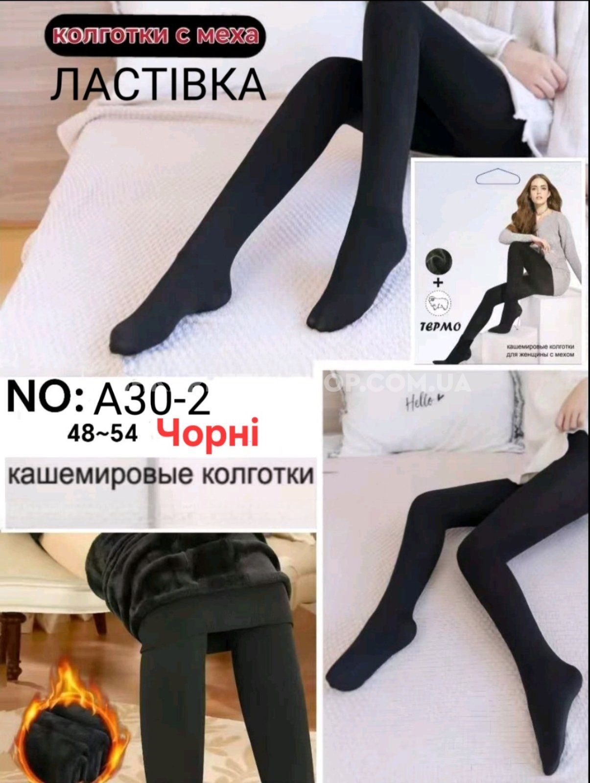 Колготки "Ластівка" А-30-2-(48-54-Чорні) кашемірові з хутряним напиленням +з формою п'яти, позаду 2 шви