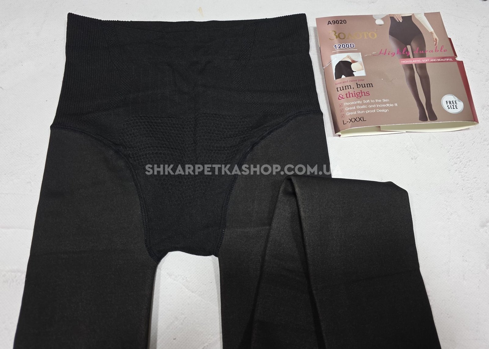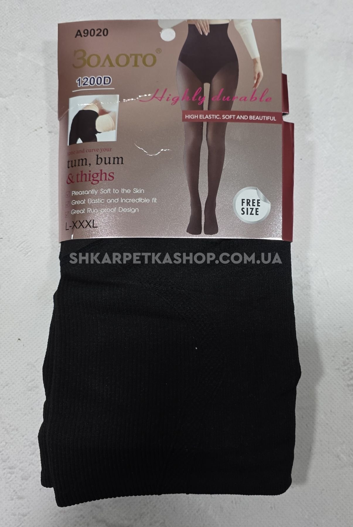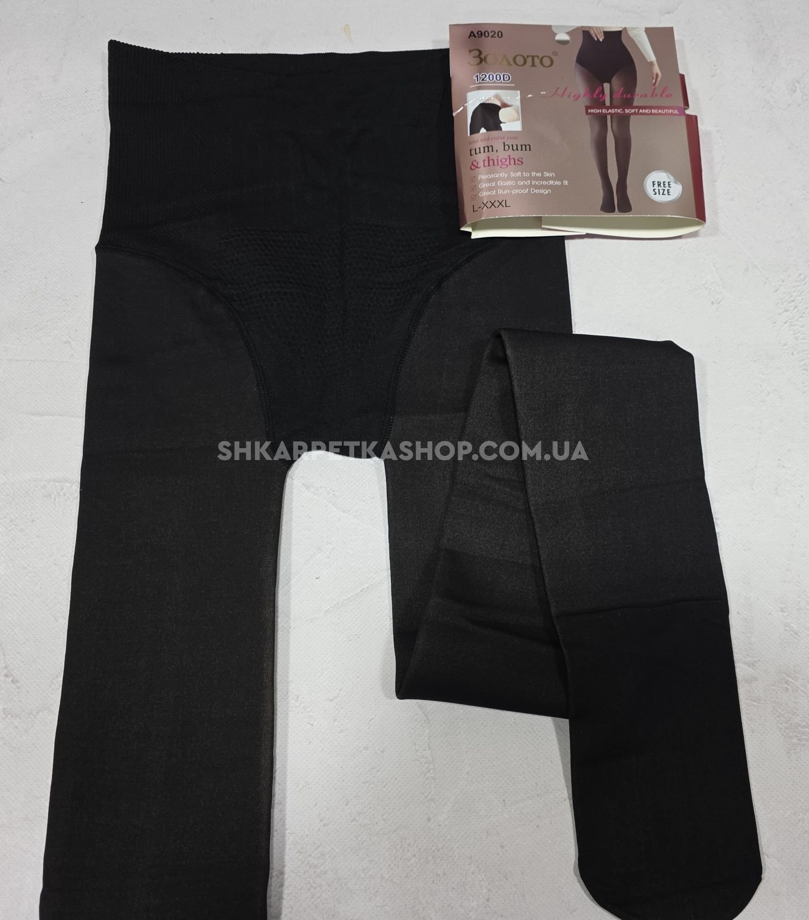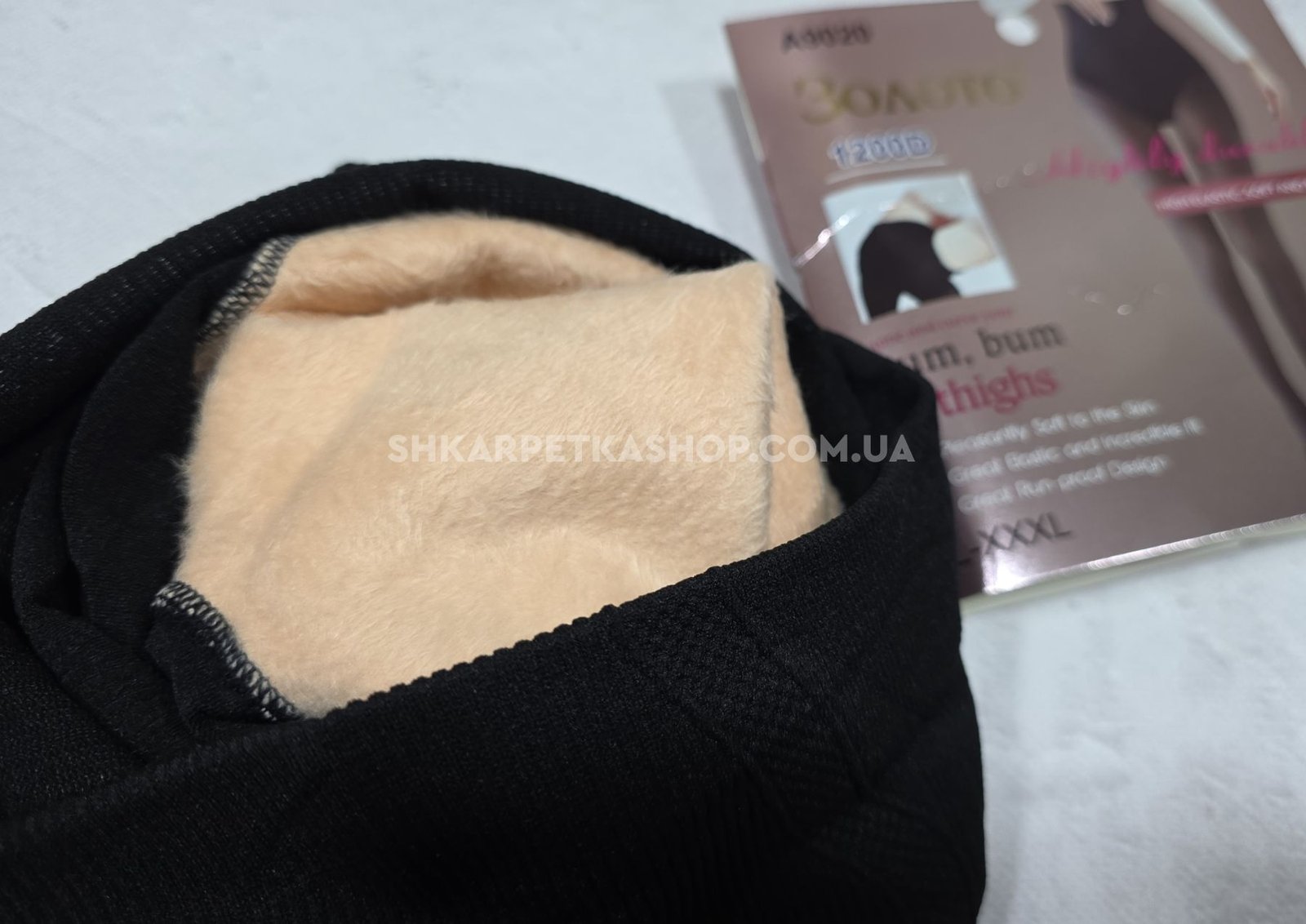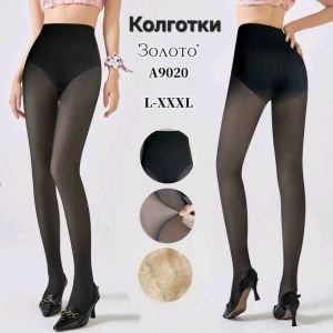 Колготки "Золото" А-9020 на хутрі до стопи +з імітацією тонких колготок 40 ден, щільність 1200 den на бежевій основі з ефектом голих ніжок, зверху підтримуючі трусики з ефектом push-up, р. L-XXXL -(46-52) -уп. 1 шт