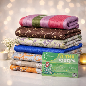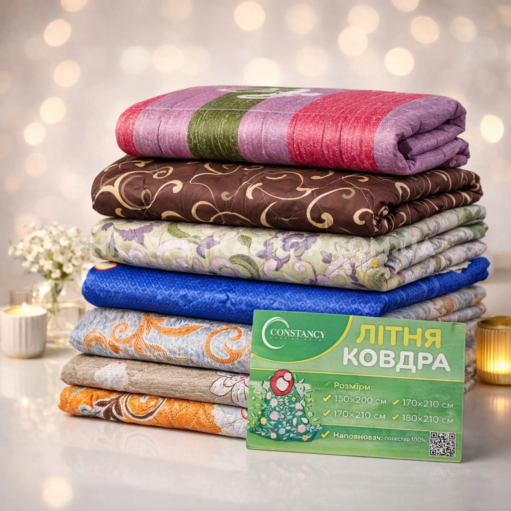 Ковдра -покривало 0221 "Constansy Літня -Мікс" - 1.5 (полуторна) з тканини полікоттон + наповнювач холлофайбер, р. +/- 145*205 -(мікс забарвлень і візерунків -без вибору!)