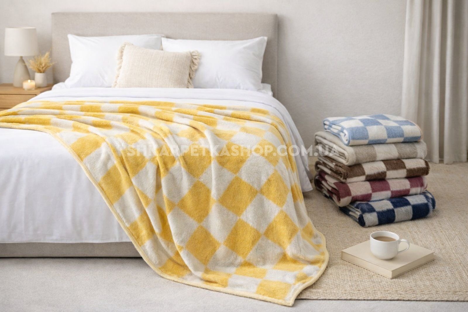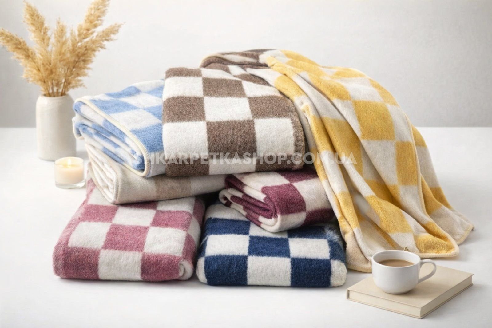 Ковдра натуральна "Шермі" 15-20 полуторна вовняна, р. +/-150*210 -(Великі клітини -мікс забарвлень без вібору кольору!)
