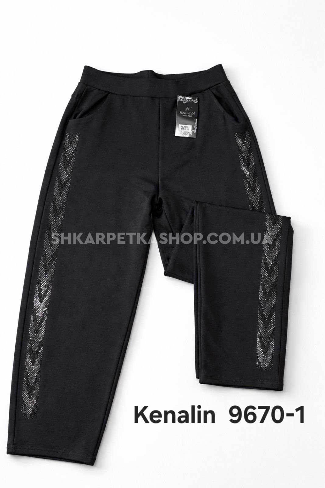 Лосини брючні "KENALIN" 9670-1 з прямим низом +з боків у довжину лампаси з камінчиків +кишені, р. 4XL/5XL-(46-50) -(чорні)