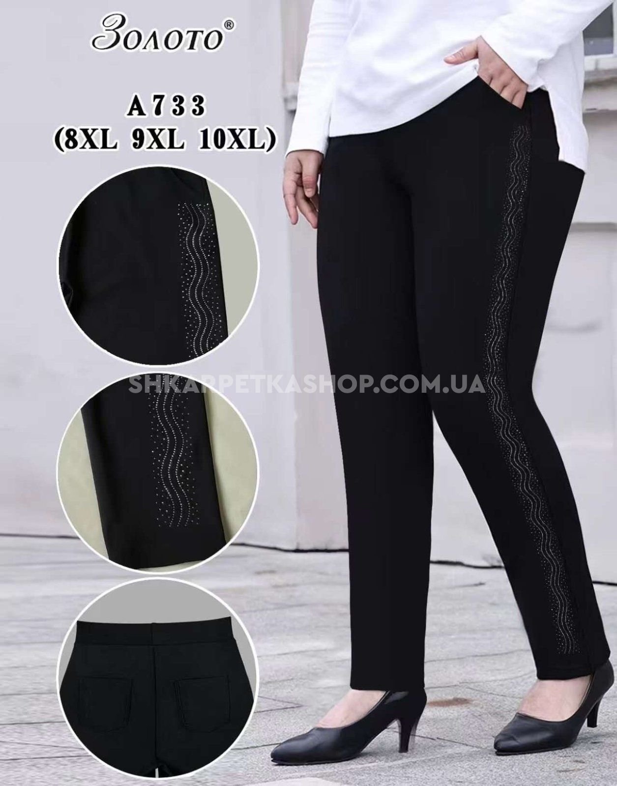 Лосини брючні "Золото" А-733 з боків візерунок з камінчиків +спереду і ззаду кишені, р. 8XL-(50-52), 9XL-(52-54), 10XL-(54-56) -(чорні)