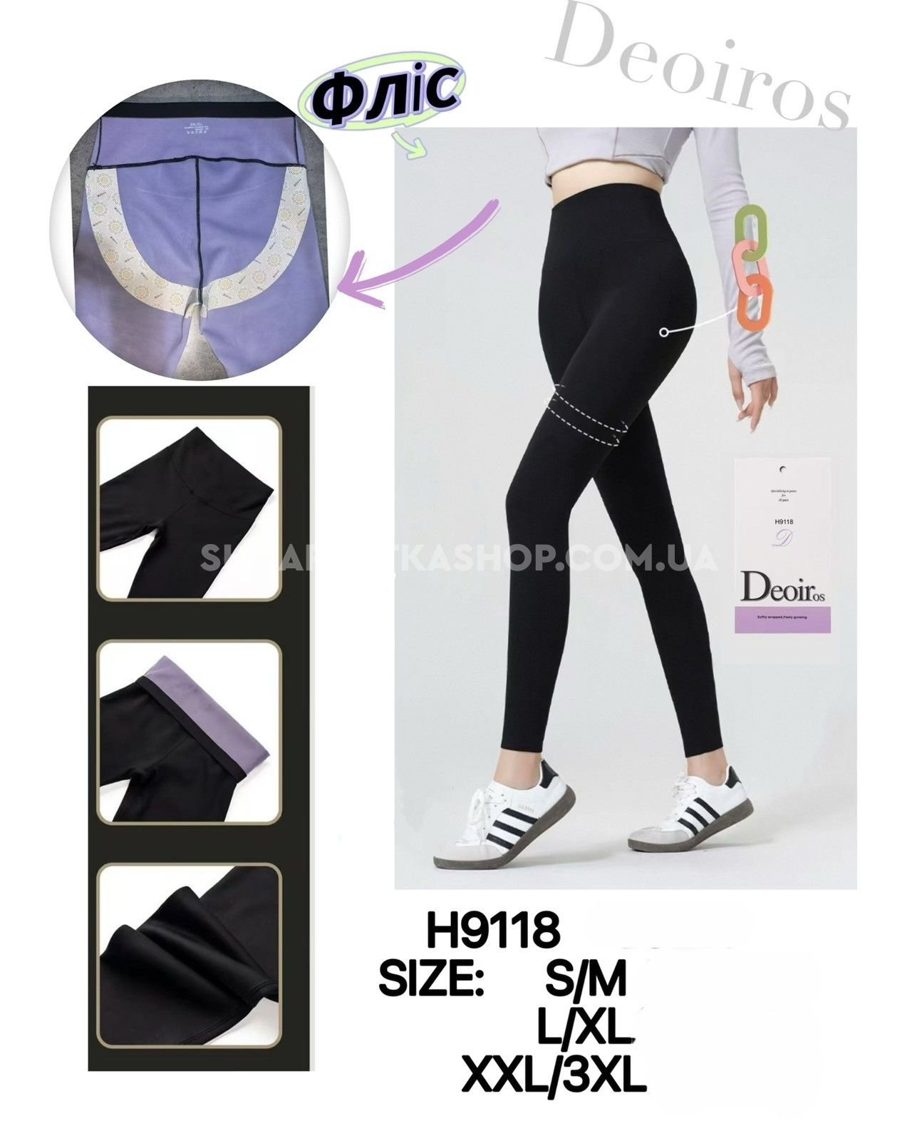 Лосини "Deoiros" Н-9118 еластичні з флісовим напиленням, з коригуючою мембраною +з широким поясом утяжкою +з підтяжкою живота та сідниць з пуш-ап ефектом (Push-up), р. L/XL-(46-50), 2XL/3XL-(48-52) -(чорні)