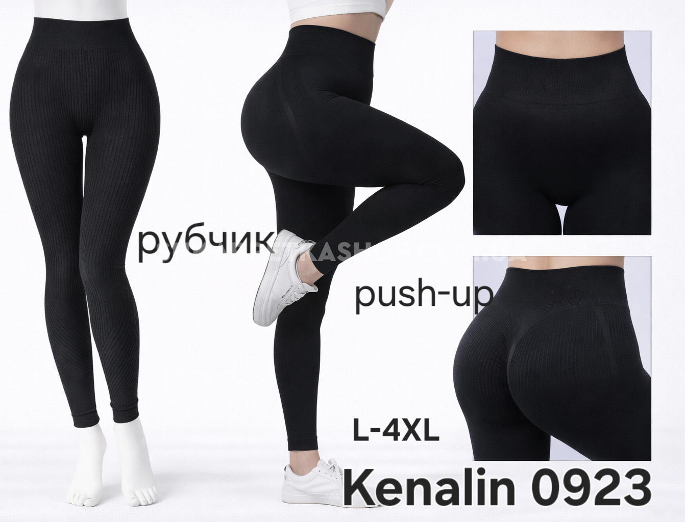 Лосини "Kenalin" 0923 безшовні еластичні в широкий рубчик +позаду ефект пуш-ап (Push-up) +зверху широкий пояс, р. L/4XL-(42-44) -(чорні)