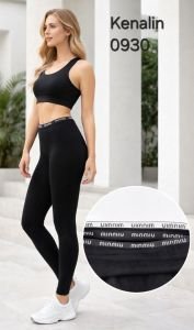 Лосини "Kenalin" 0930 безшовні з еластичного бавовняного трикотажу +на додатковій плоскій резинці написи, р. XL-5XL-(44-48) -(чорні)