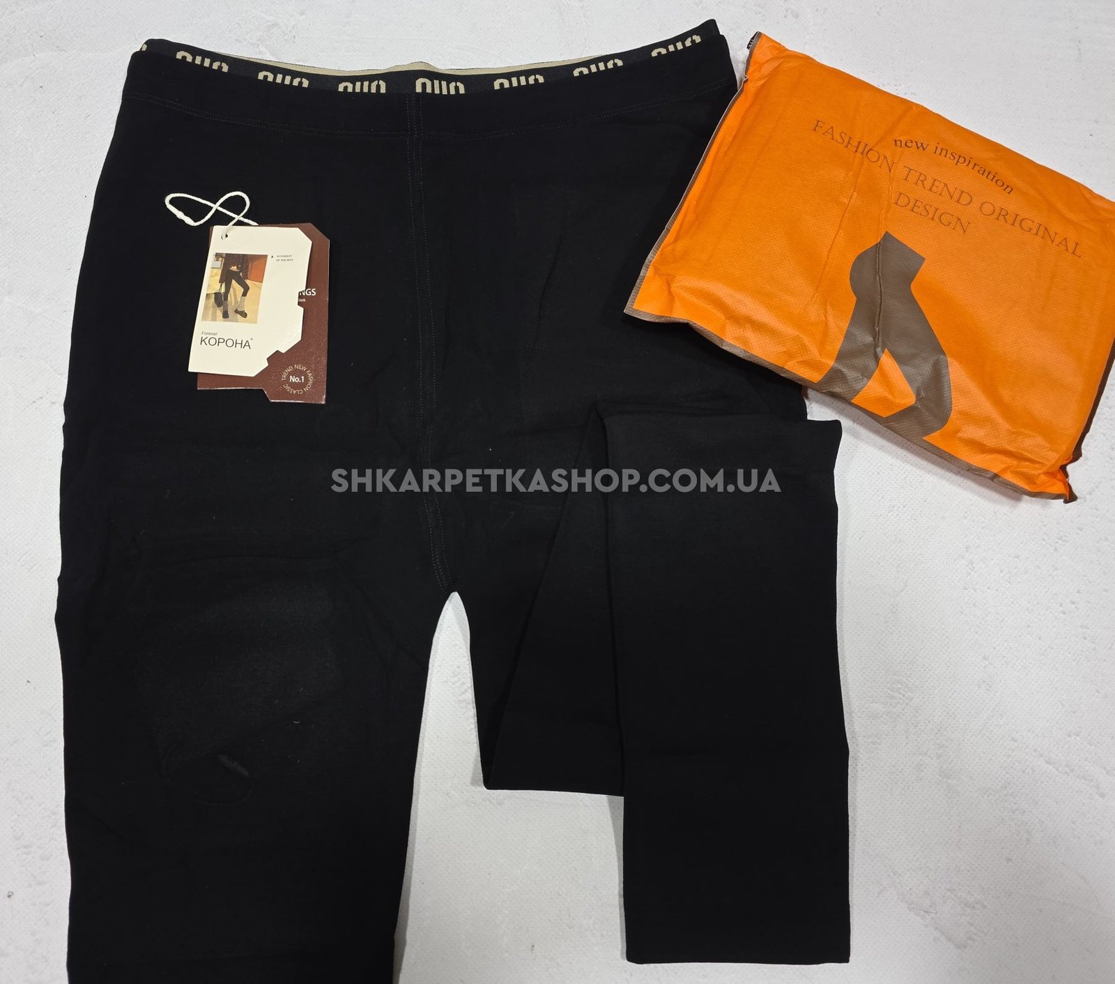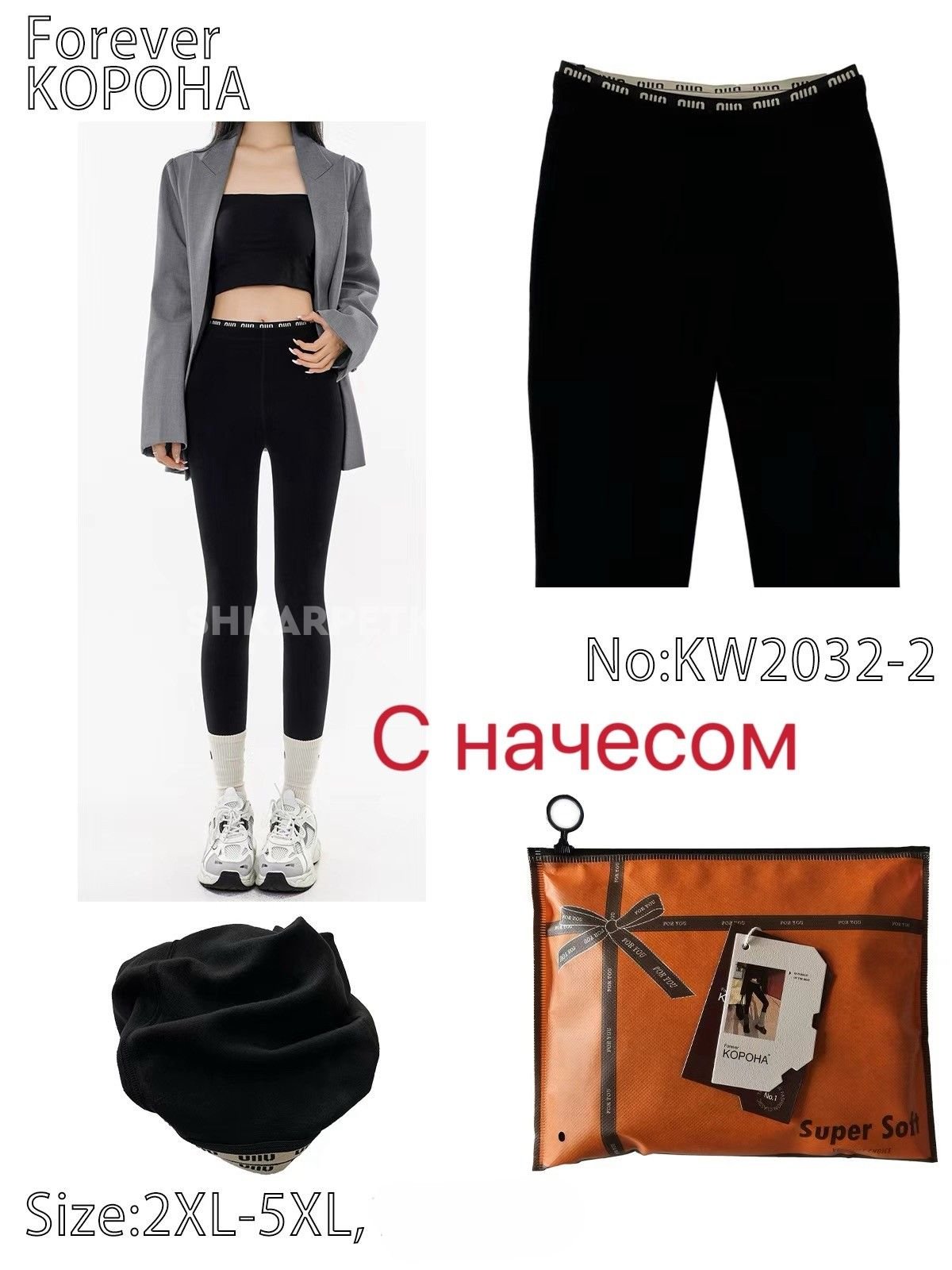 Лосини "Корона" KW-2032-2 -(2XL-5XL) з еластичного бавовняного трикотажу з плюшевим начісом, з підтягуючим ефектом +на додатковій плоскій резинці написи, р. 2XL-5XL-(46-50) -(чорні)