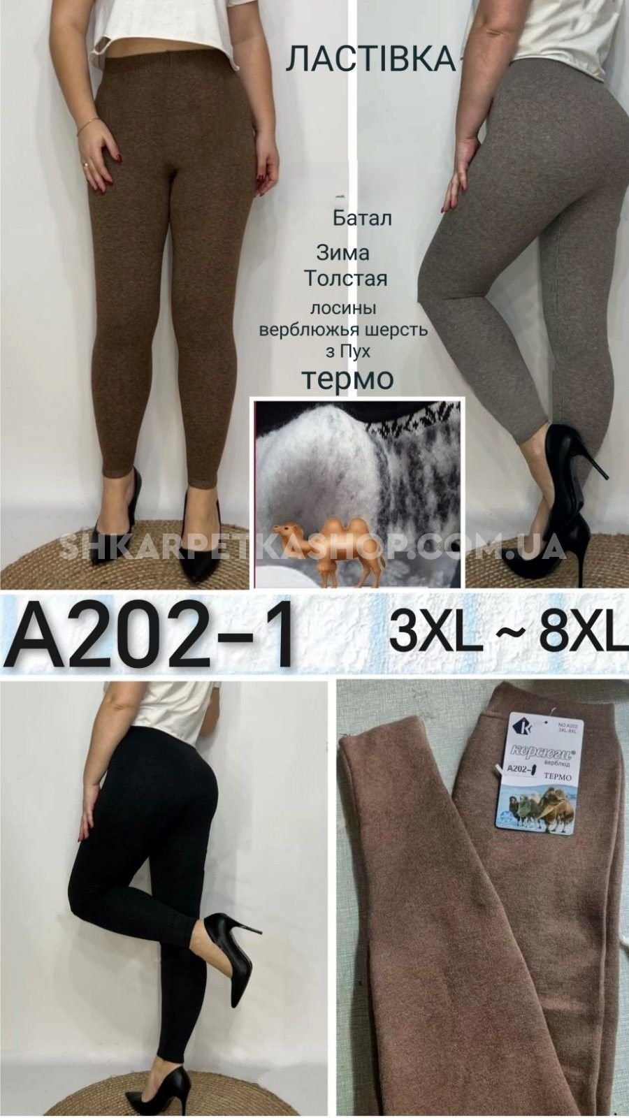 Лосини "Ластівка" А-202-1 щільні з верблюжої вовни /кашемір з густим начісом, р. 3XL-8XL-(52-58)