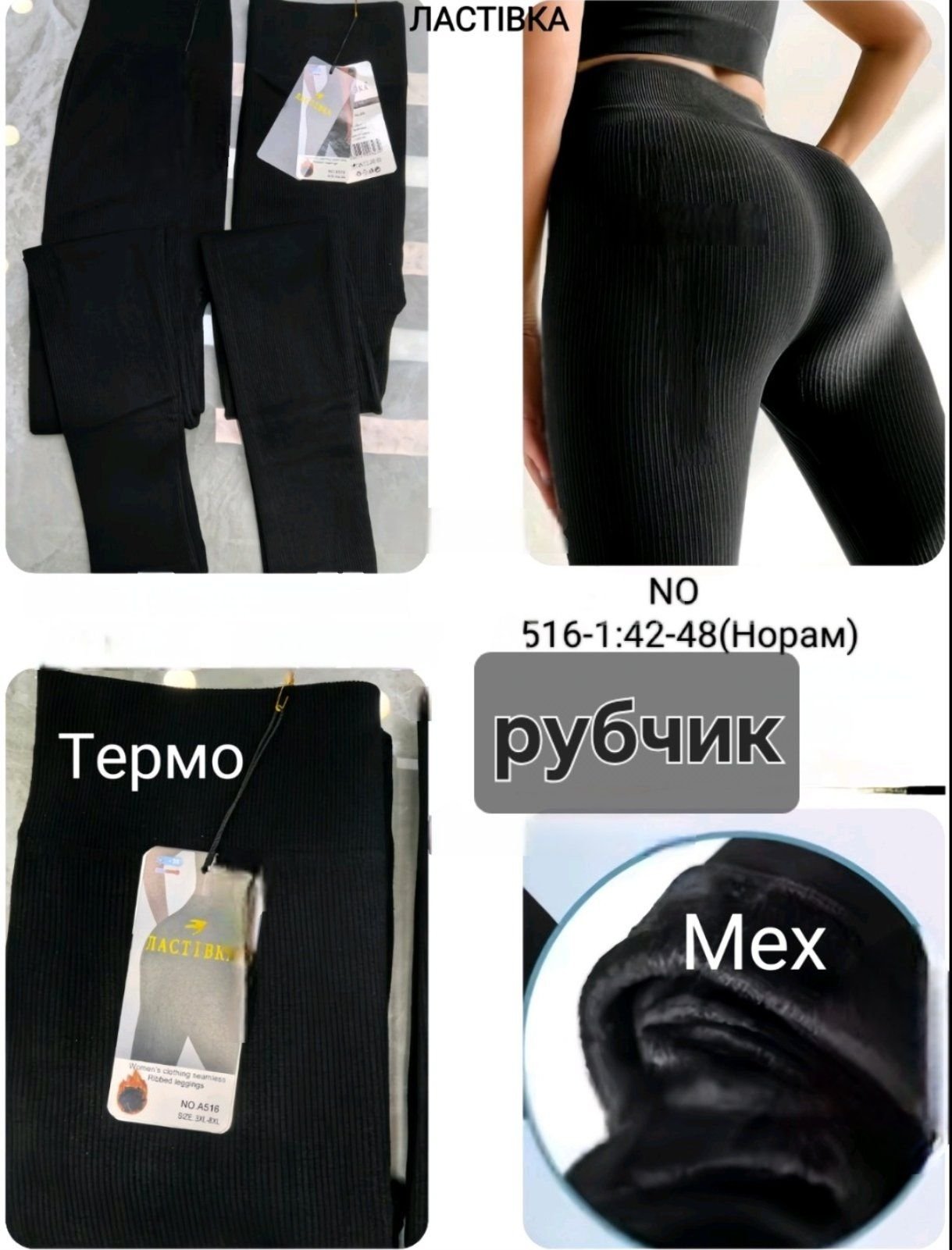 Лосини "ЛАСТІВКА" А-516-1 /42-48 безшовні в рубчик на щільному хутрі -(чорні)