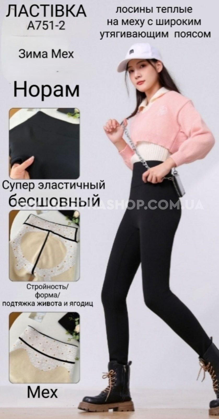 Лосини "Ластівка" А-751-2-МЕ еластичні на збитому хутрі +спереду та ззаду з мембраною +з широким поясом утяжкою +з підтяжкою живота та сідниць з пуш-ап ефектом (Push-up), р. 2XL-(100–110 см) -(чорні)