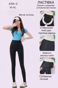 Лосини "Ластівка" А-704-2 демі гладкі з коригуючими тейпами, з широким поясом утяжкою +з підтяжкою живота та сідниць з пуш-ап ефектом (Push-up), р. М-(42-46), L-(44-48), XL-(46-50) -(чорні)