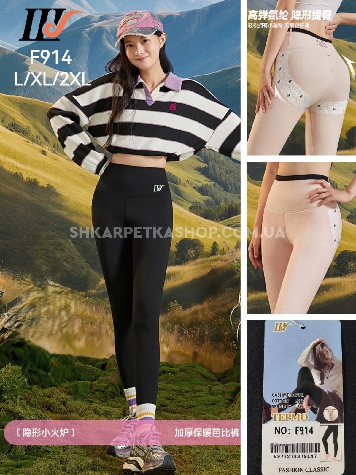 Лосини "Шугуан" W-914 гладкі на збитому флісі з коригуючою мембраною та тейпами +з широким поясом утяжкою +з підтяжкою живота та сідниць з пуш-ап ефектом (Push-up), р. L-(40-46), XL-(42-48), 2XL-(44-50), 2XL/3XL-(48-52) -(чорні)