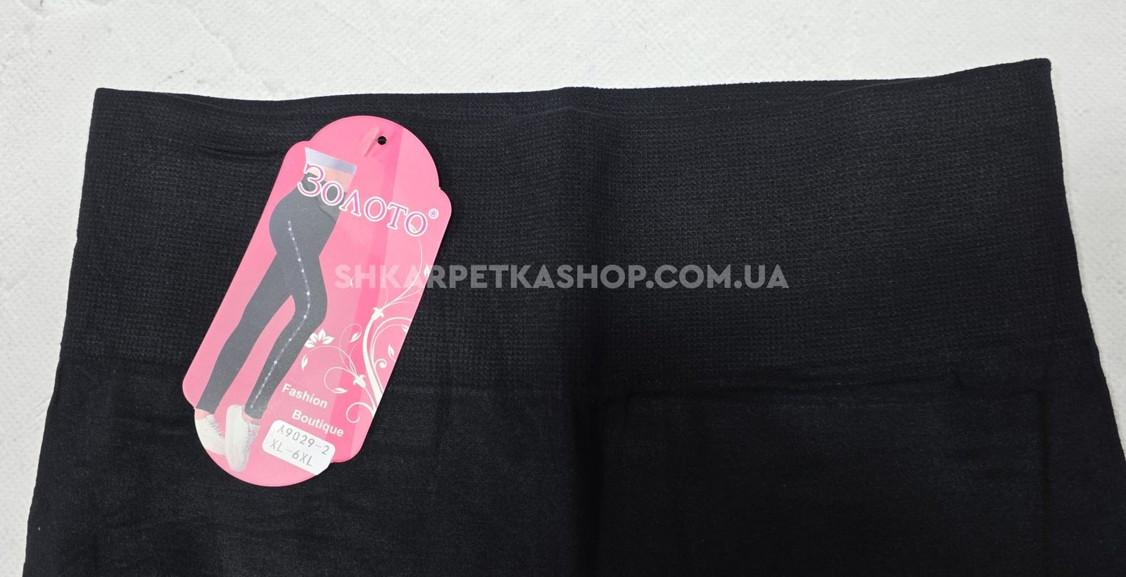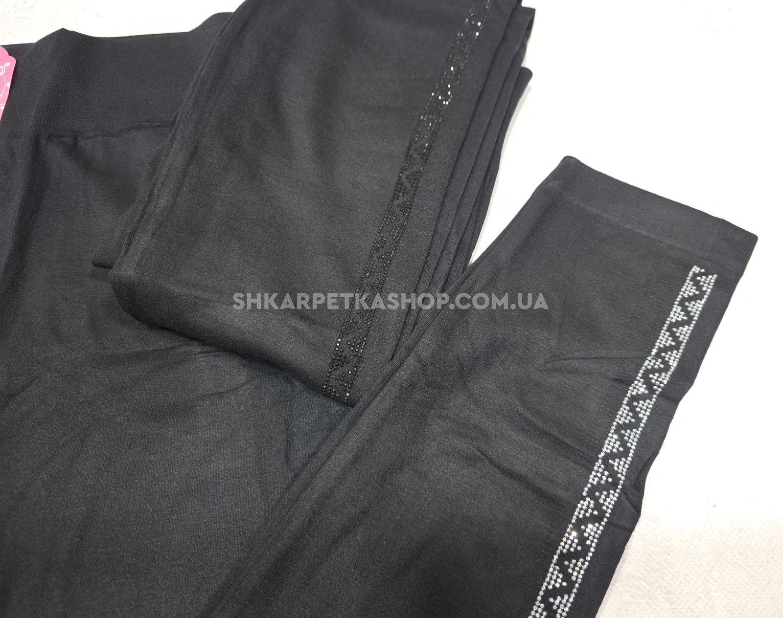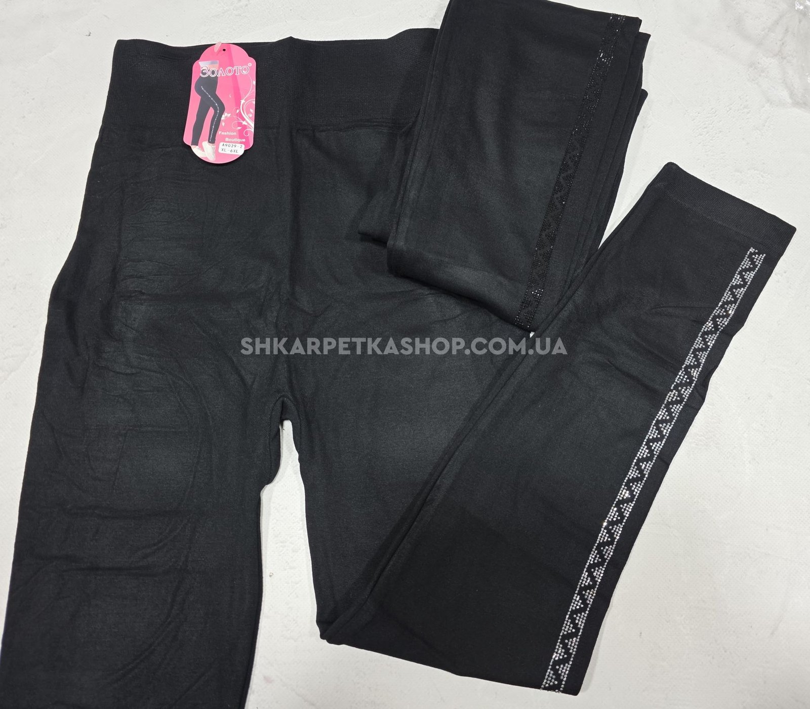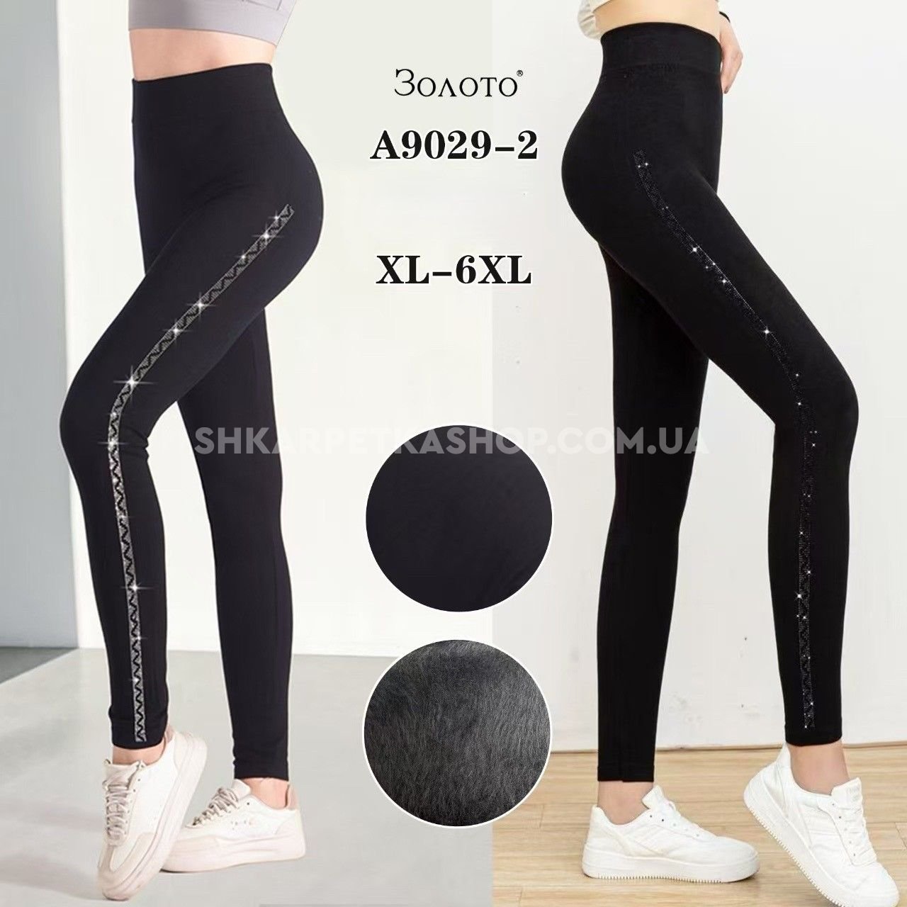Лосини "Золото" 9029-2 безшовні з бавовняним верхом на хутрі +з боків візерунок зі страз, широкий пояс, р. ХL/6XL (46-50) -(чорні)