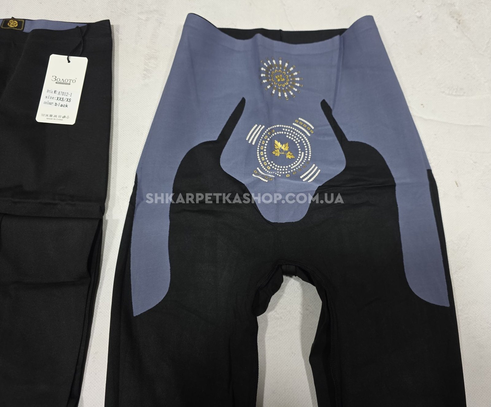 Лосини "Золото" А-7012-1 демі гладкі з коригуючою мембраною та тейпами +з широким поясом утяжкою +з підтяжкою живота та сідниць з пуш-ап ефектом (Push-up) р. XXS/XS-(42-46), S/M-(44-48), L/XL-(46-50), 2XL3XL-(48-52) -(чорні)