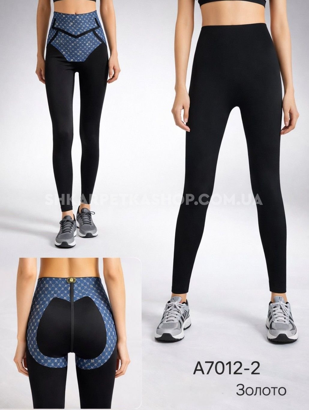 Лосини "Золото" А-7012-2 демі гладкі з коригуючою мембраною та тейпами +з широким поясом утяжкою +з підтяжкою живота та сідниць з пуш-ап ефектом (Push-up) р. XXS/XS-(42-46), S/M-(44-48), L/XL-(46-50), 2XL3XL-(48-52) -(чорні)