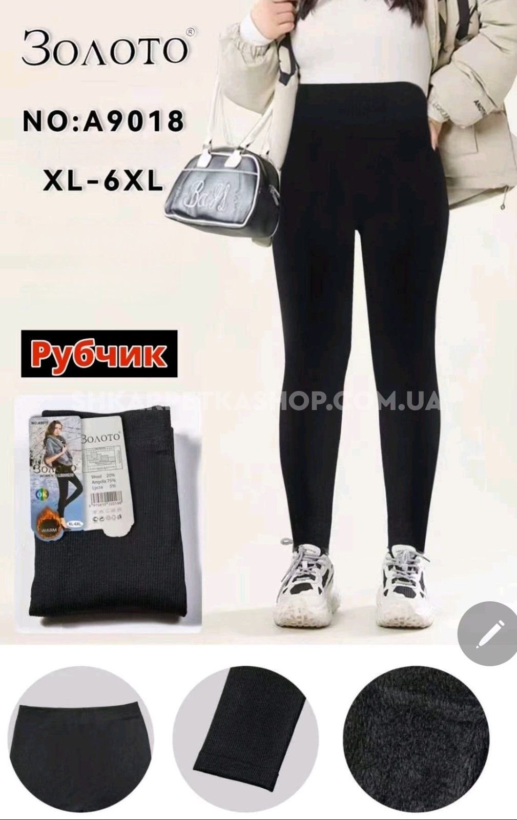 Лосини "Золото" А-9018 безшовні в рубчик на тонкому хутрі, р. XL-6XL-(44-48) -(чорні)