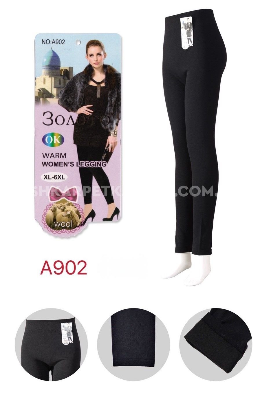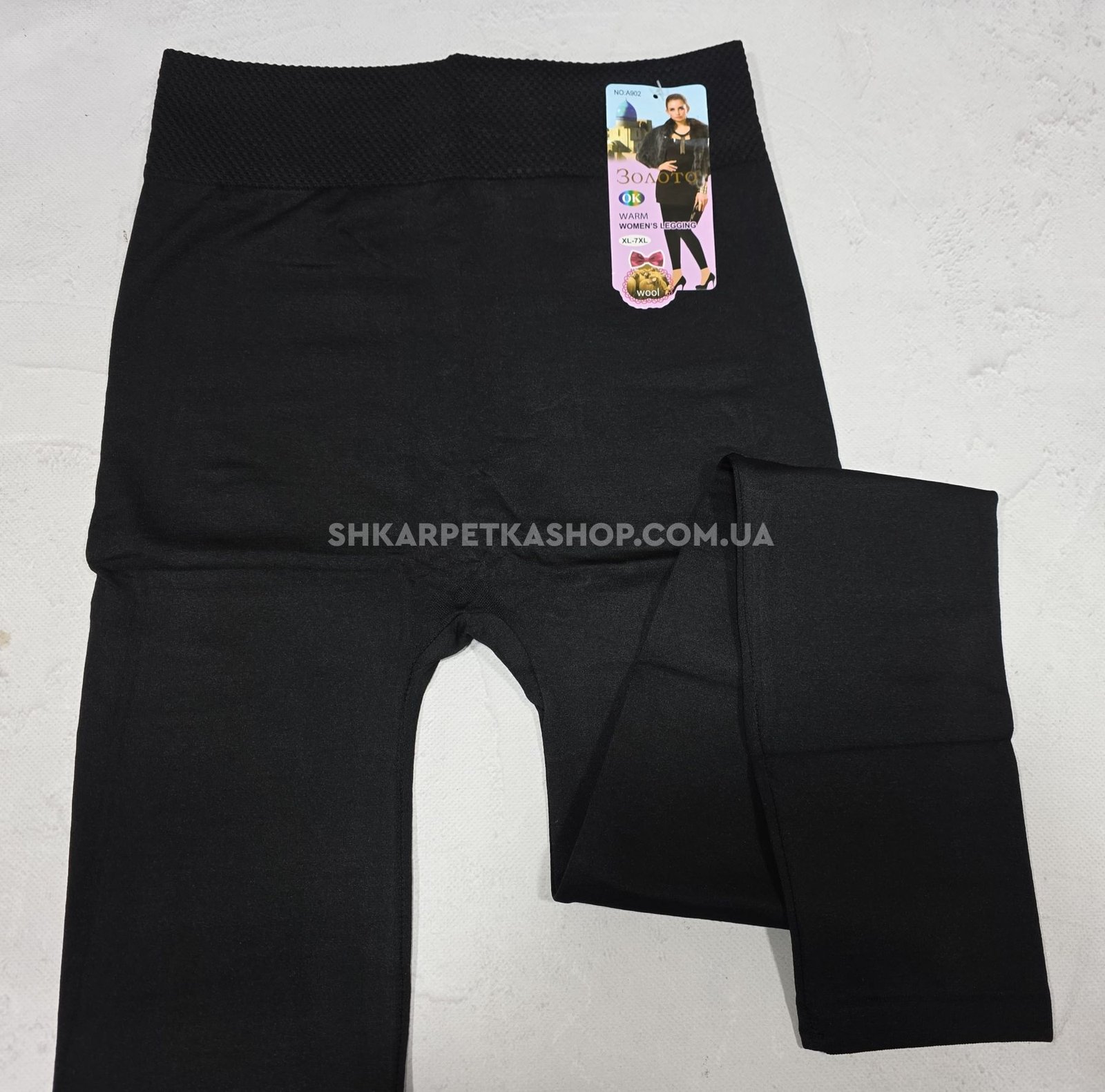 Лосини "ЗОЛОТО" А-902 безшовні на тонкому хутрі з широким поясом, р. XL/7XL-(48-52) -(чорні)