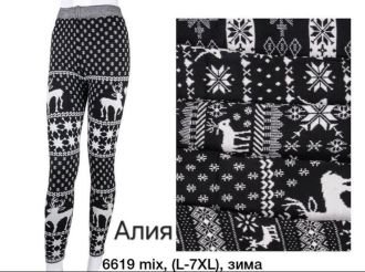 Лосини "Алія" 6619 в орнамент з начосом, р. L/7xl-(48-52) -(Чорно-білі БЕЗ ВИБОРУ візерунка !!!) -уп. 1 шт