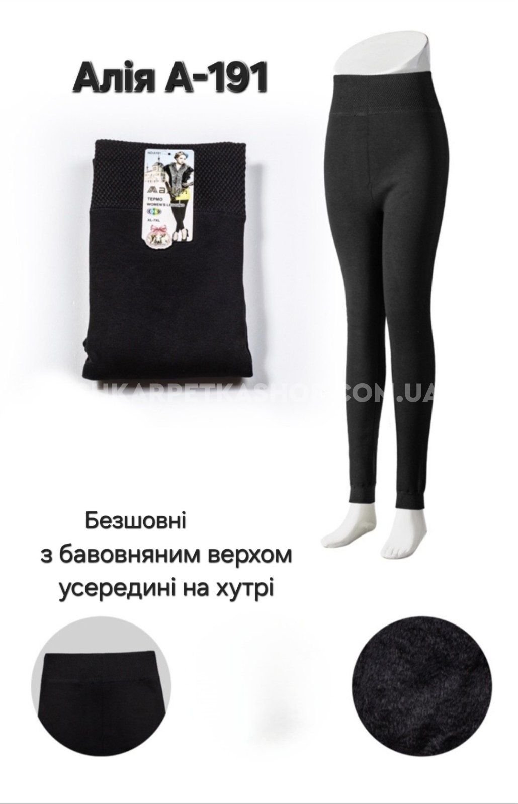 Лосини "АЛІЯ" А-191 термо безшовні з бавовняним верхом на хутрі, р. Xl-7xl-(50-56) -(чорні)
