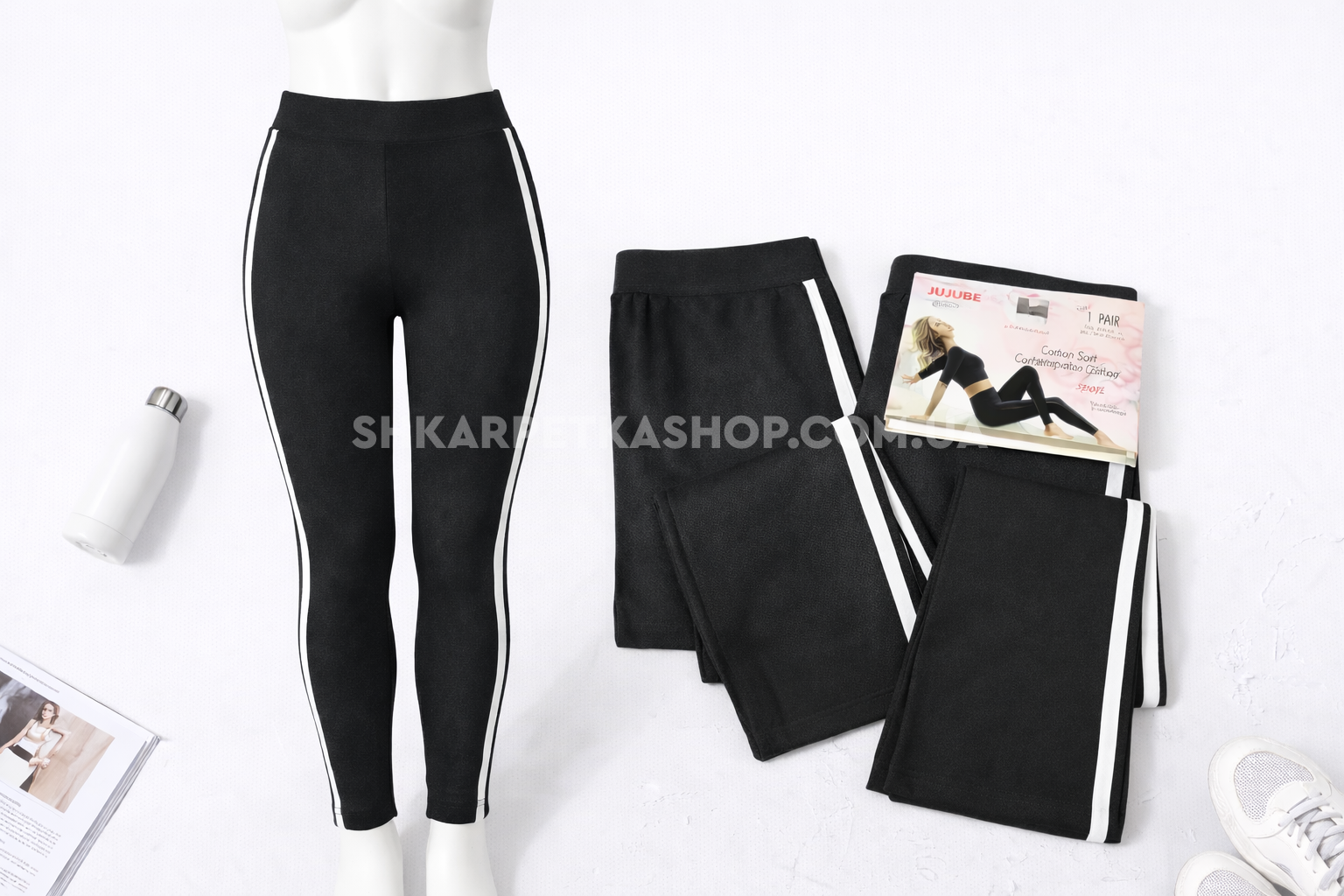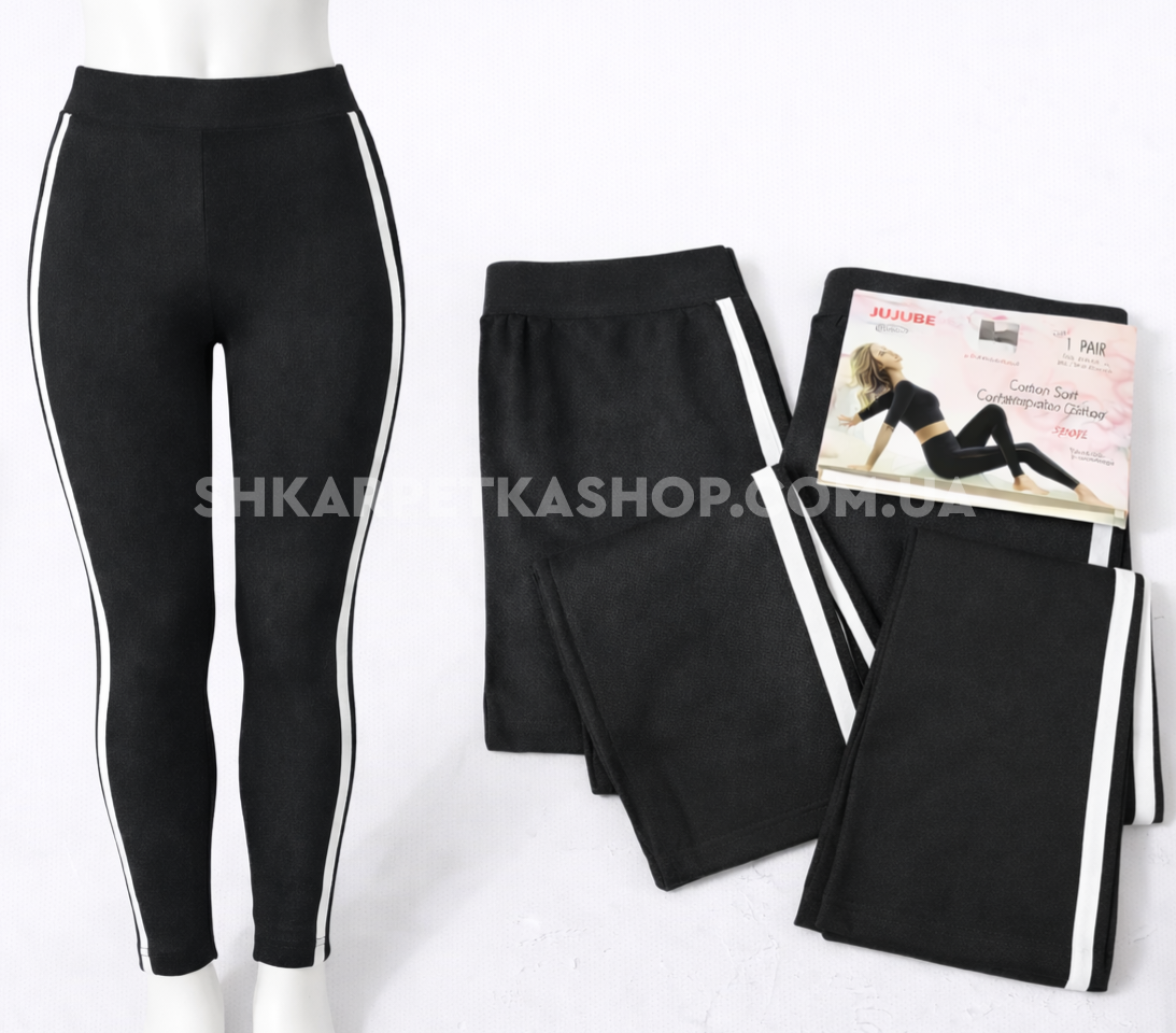 Лосини "JUJUBE" В-811-А безшовні бавовняні з еластаном, р. Хl/5xl-(48-52) -(чорні +з боків білі лампаси)