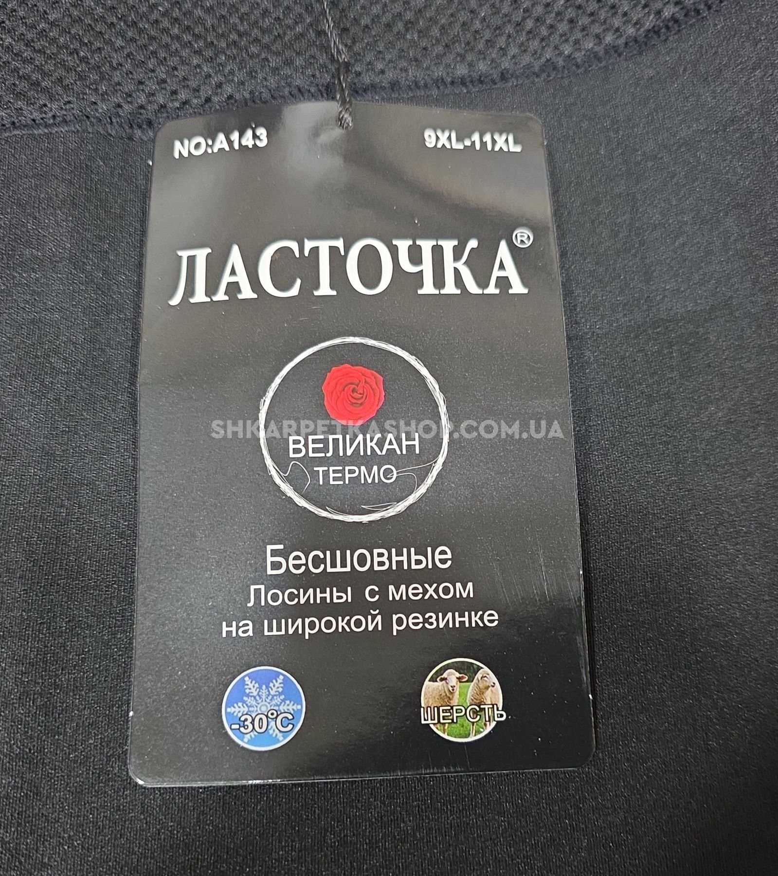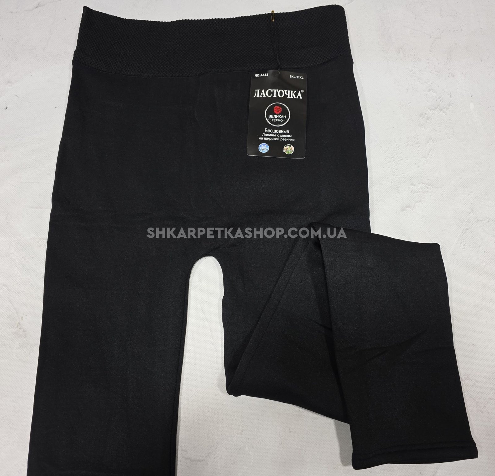 Лосини "Ластівка" А-143 термо безшовні на товстому хутрі +вовна, з широким поясом р. 9xl/11xl-(52-60) -(чорні)