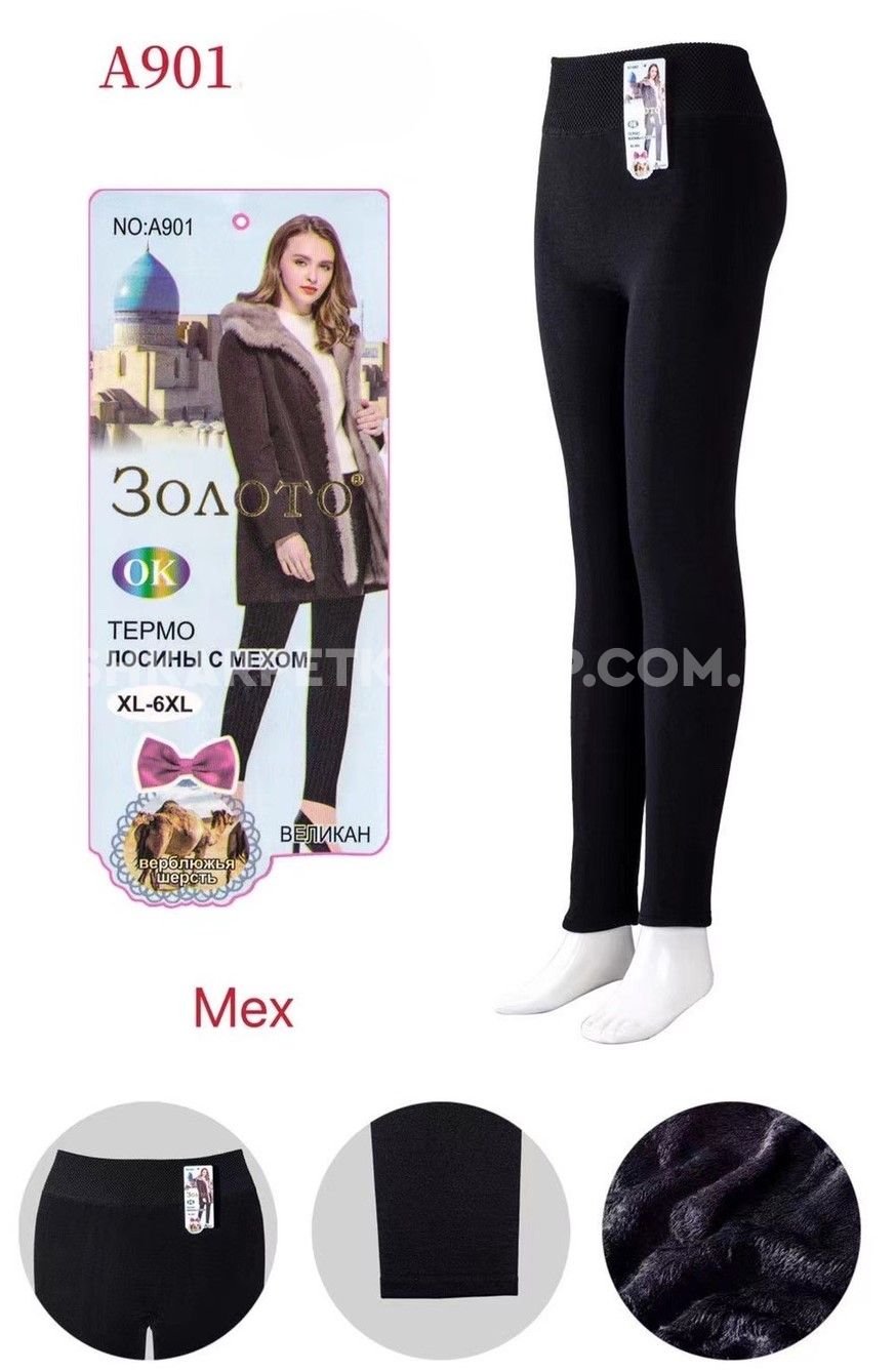 Лосини "Золото" А-901 безшовні на хутрі +широкий пояс, р. XL/6XL-(46-50) -(чорні)