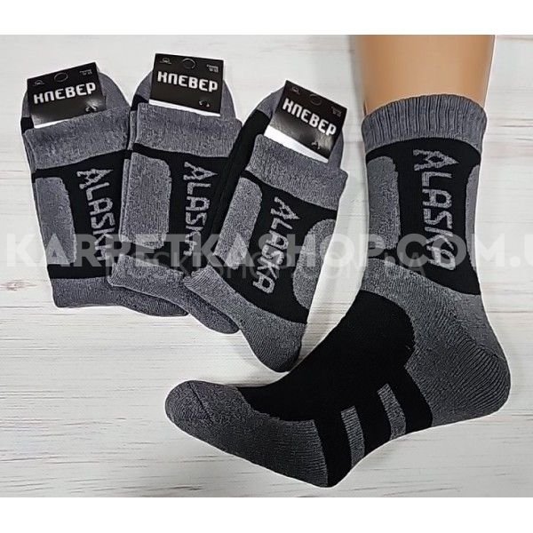 Шкарпетки Олександрія "KLEVER-CLV" 1527-2 махрові чол, р. 41-45 -(комбінованісірі з чорним +на чорній вставцісірий напис Аlaska-махра)