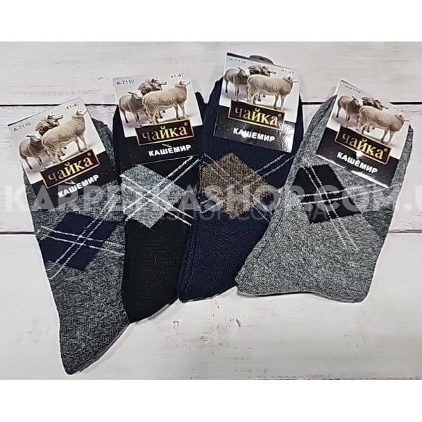 Шкарпетки "ЧАЙКА" 7110-7 кашемір/вовна чоловічі, р. 41-47 -асорті -(на великих ромбах світлі смужки х) -уп. 12 шт