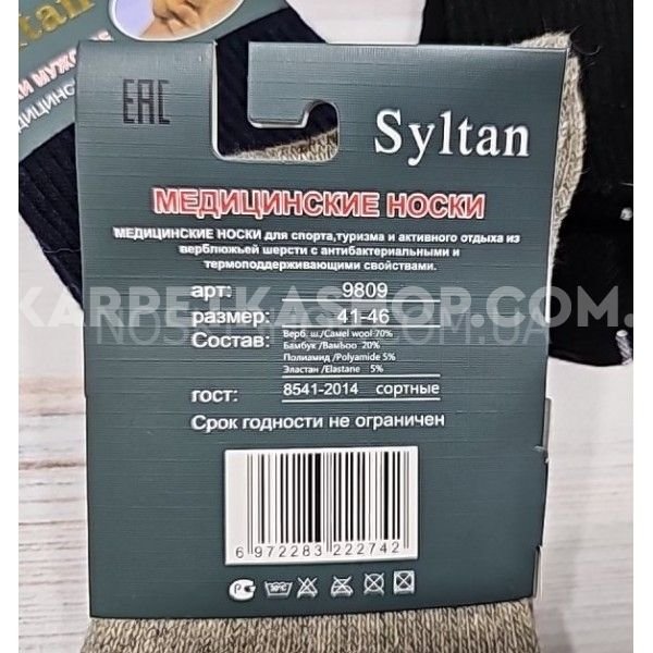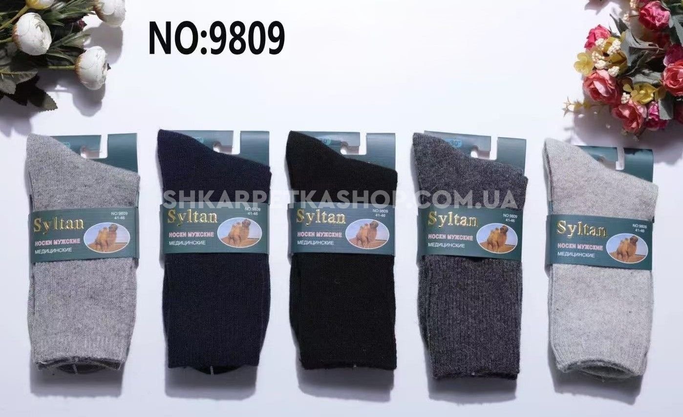 Шкарпетки "SYLTAN" 9809 верблюжа вовна "медичні з ослабленою гумкою " чоловічі, р. 41-46 -асорті -(однотонні +широка ослаблена резинка) -уп. 12 шт