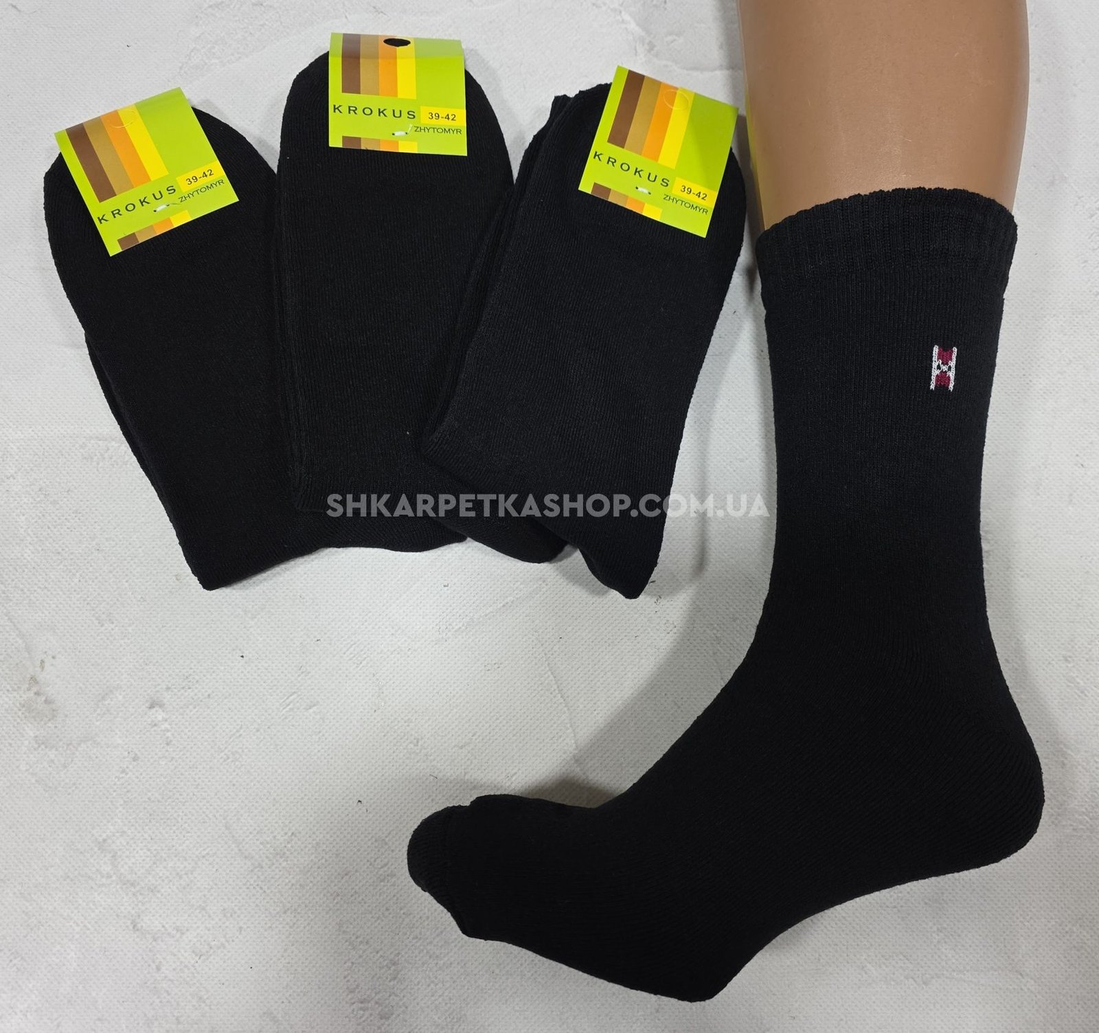 Шкарпетки Житомир "КРОКУС" 2020-1 махрові чоловічі класика, р. 39-42, 42-45 -(Махра -чорні) -уп .12 шт