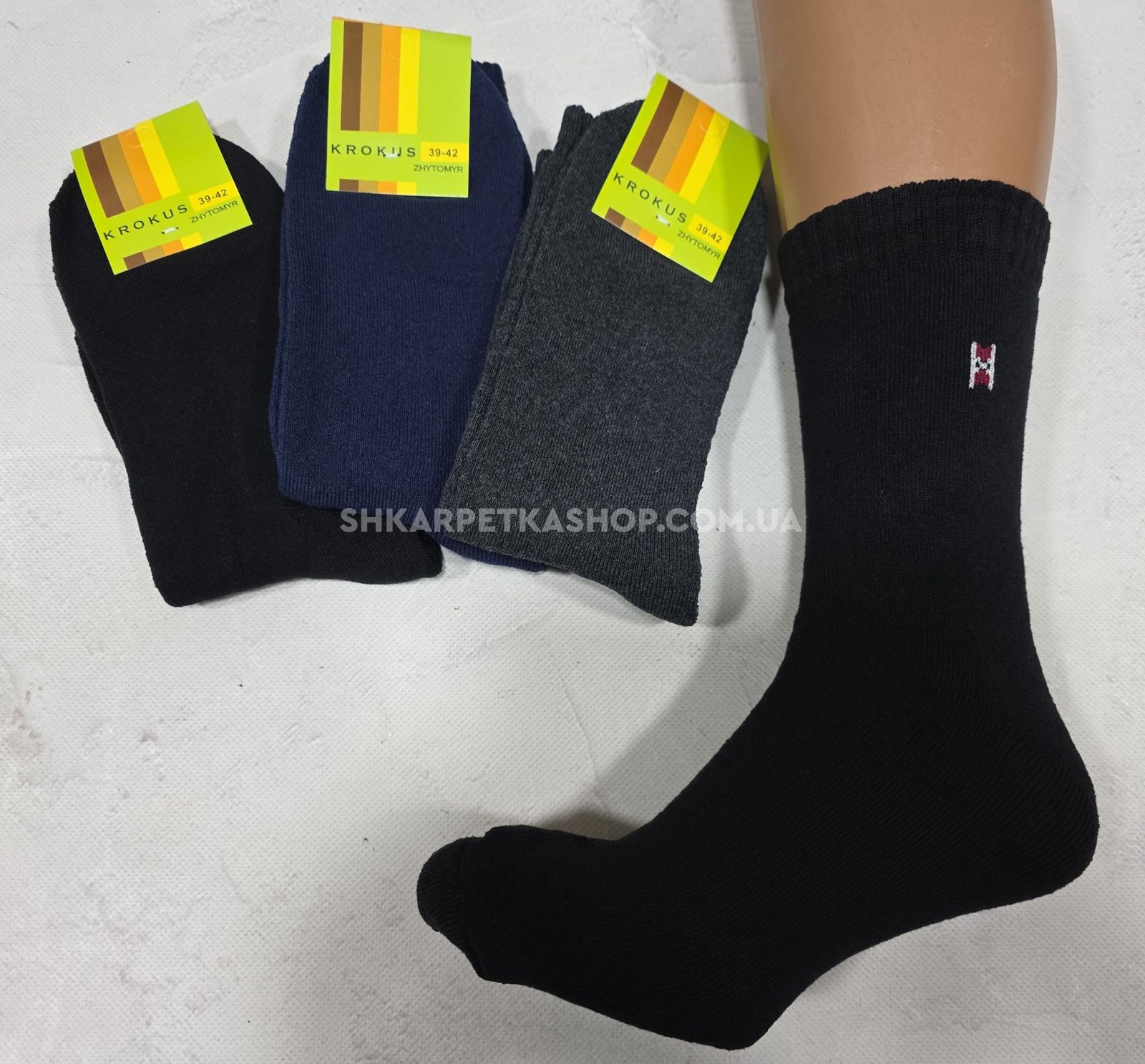 Шкарпетки Житомир "КРОКУС" 2020 махрові чоловічі класика, р. 39-42, 42-45 -(Махра -асорті) -уп. 12 шт