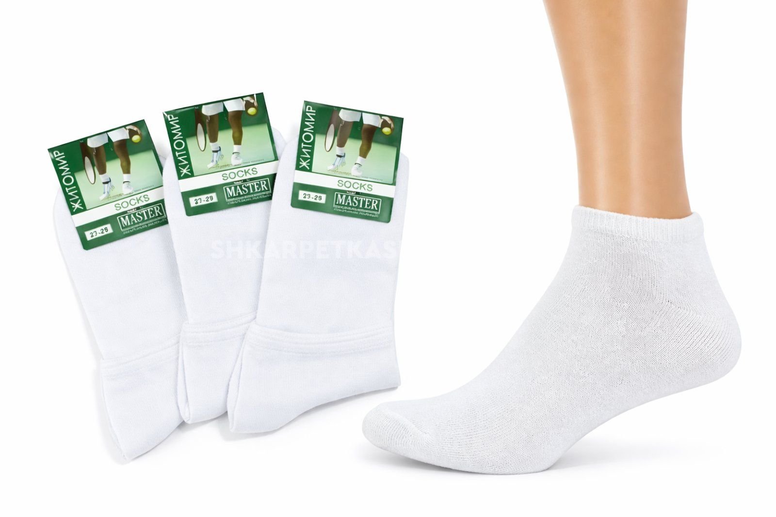 Шкарпетки Житомир "Мaster" 515-2 стрейч /cotton чоловічі "Спорт-короткі" р. 25-27, 27-29 -(білі -короткі -гладь)