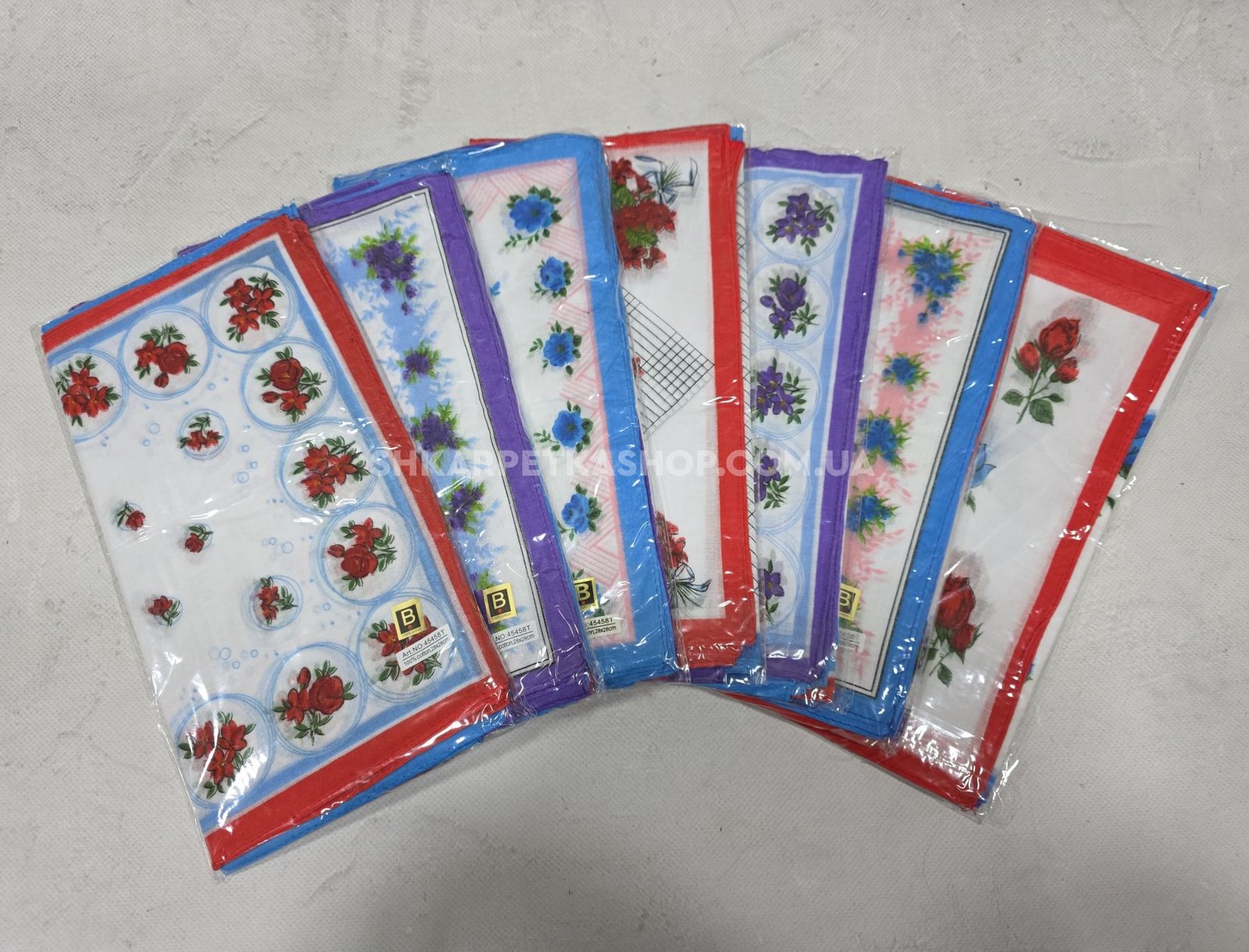 Носова хустка жіноча 45458-3 cotton р. 28*28 -уп. 10шт -(випадкове асорті -без вибору забарвлення!)