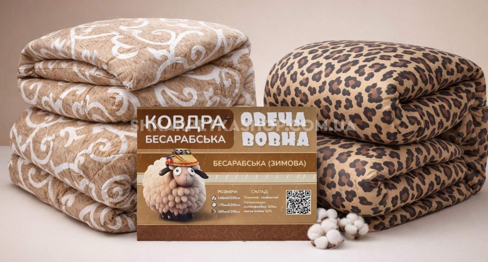 Ковдра зимова "Овеча вовна" - екологічний і натуральний чистий наповнювач, має відмінну теплоізоляційну властивість і легко піддається обробці. Ковдра зимова "Овеча вовна" складається з: Овеча вовна (50%) - ковдра з вовни досить довго може зберігати свою вихідну форму, а все завдяки своїй природній завитій структурі вовни. Головна перевага ковдри з вовни - це чудова термоізоляція. Такі вироби надзвичайно теплі. У вовні міститься спеціальний вовняний віск ланолін, який не дасть завестися клопам, а крім того, зробить сон під такою ковдрою в кілька разів приємніше. Волокно холлофайбер (50%) – завдяки якому покривало-ковдра стає більш щільною. Ковдри з таким наповненням мають високий показник теплоізоляції та гігієнічні властивості, що не вбирають запахи, в них не заводяться паразити. Тканина полікотон — складається з бавовни та синтетичного матеріалу (поліестеру), що зберігає тепло, а на дотик є м'яким і пружним. Ковдра зимова "Овеча вовна" - легка і комфортна ковдра і має: Антистатичними властивостями; Безпечний в експлуатації та не викликає негативних реакцій; Повітропроникний і дозволяє шкірі дихати; Добре вбирає вологу; Прослужить не один рік; Чинить сприятливий вплив на організм; Добре зберігає форму; Відмінно утримує тепло; Примітка! Виробник залишає за собою право без повідомлення споживача вносити зміни до конструкції виробів для покращення їх технологічних та експлуатаційних параметрів. Зовнішній вигляд виробів може відрізнятись від представлених на фотографіях (уточнюйте у менеджера). Увага! Для зручного транспортування товар упаковується та пресується спеціальною машиною. Товар повертає свій оригінальний вигляд протягом доби експлуатації. Характеристики: Розміри та вага: 1,45 х2, 05 м. - 1,4 кг. (320 г/м2, +-10%); 1,75 х2, 05 м. - 1,6 кг. (320 г/м2, +-10%); 1,95 х2, 05 м. - 1,8 кг. (320 г/м2, +-10%); Тканина: Полікотон Наповнення: Холлофайбер (50%), Овеча шерсть (50%); Колір та малюнок може змінюватись (залежно від постачання тканини)