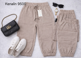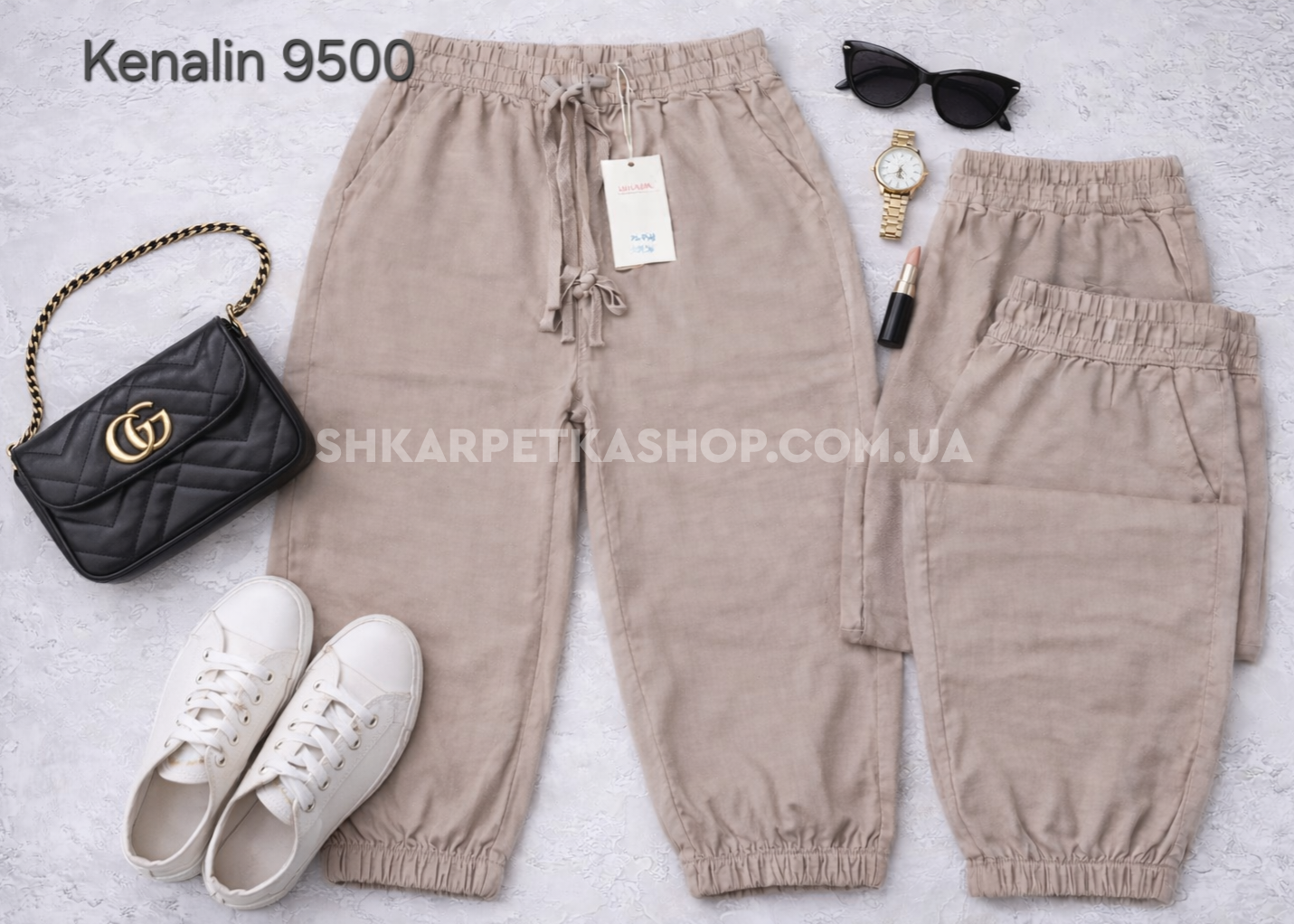 Прогулянкові штани "KENALIN" 9500 літні джоггери cotton-стрейч, низ на манжете резинці, спереду та ззаду кишені, р. 2XL-(46-50) -(пильна троянда)