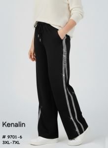 Прогулянкові штани "KENALIN" 9701-6 палоццо з широким низом, верх на резинці +з боків лампаси з камінчиків +спереду з боків кишені, р. 3XL/4XL-(50-52), 4XL/5XL-(52-54), 5XL/6XL-(54-56), 6XL/7XL-(56-58) -(чорні) -уп. 1 шт