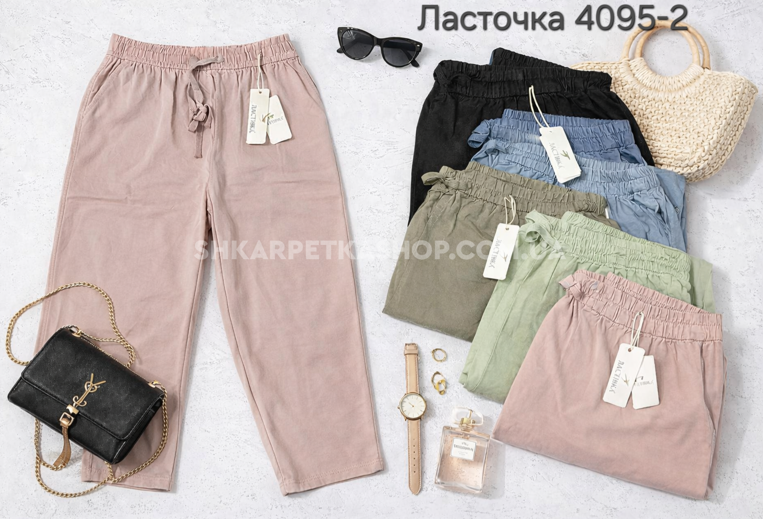 Прогулянкові штани "Ласточка" 4095-2 з полегшеного котону +спереду та ззаду кишені, пояс на резинці, р. 7XL/8XL-(52-54), 9XL/10XL-(54-56) -уп. 1 шт