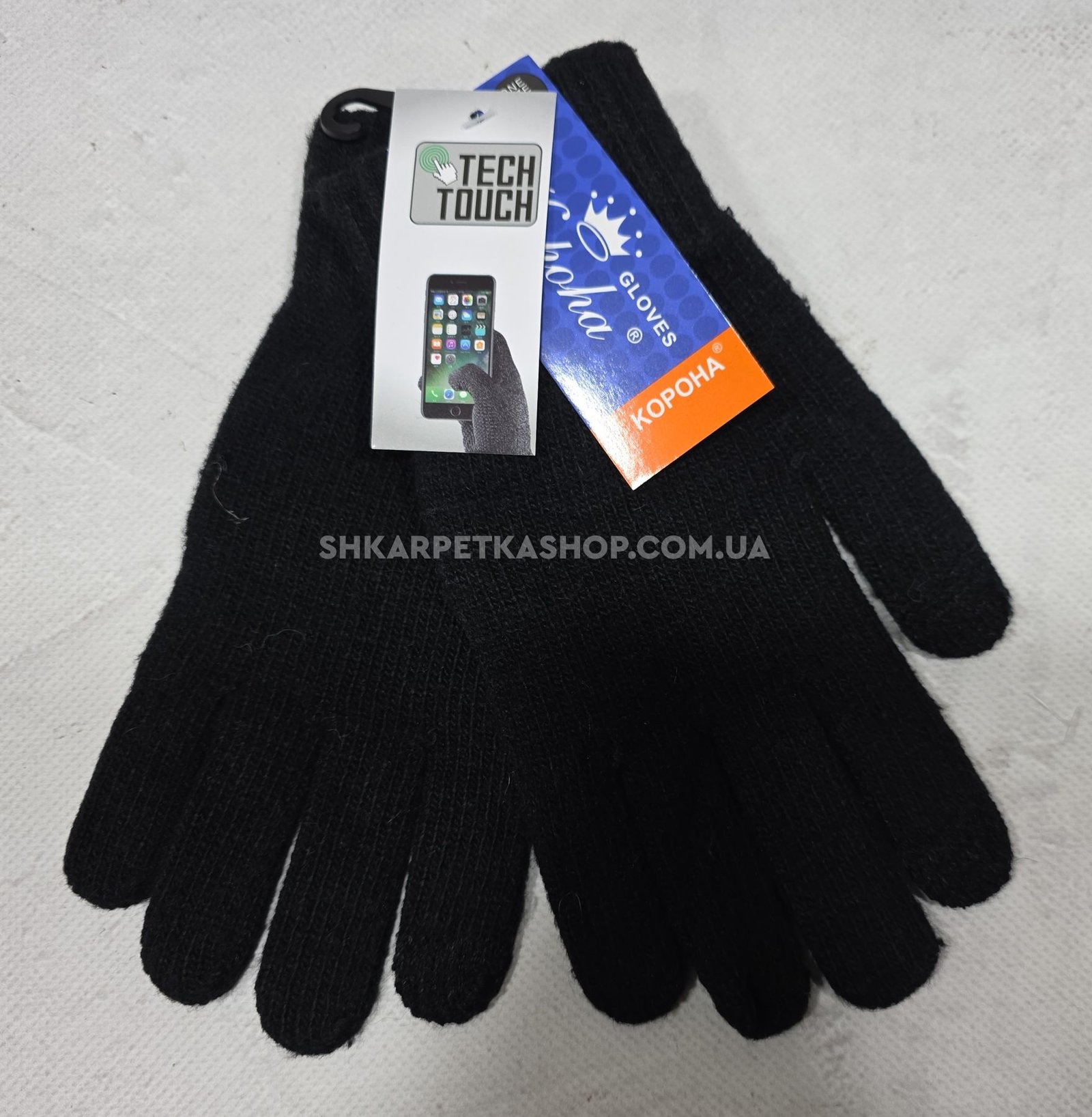 Рукавички чоловічі "Корона" Н-8125 з начосом та з пальцями для сенсорного екрану -(чорні -чоловічі) -уп.12 шт