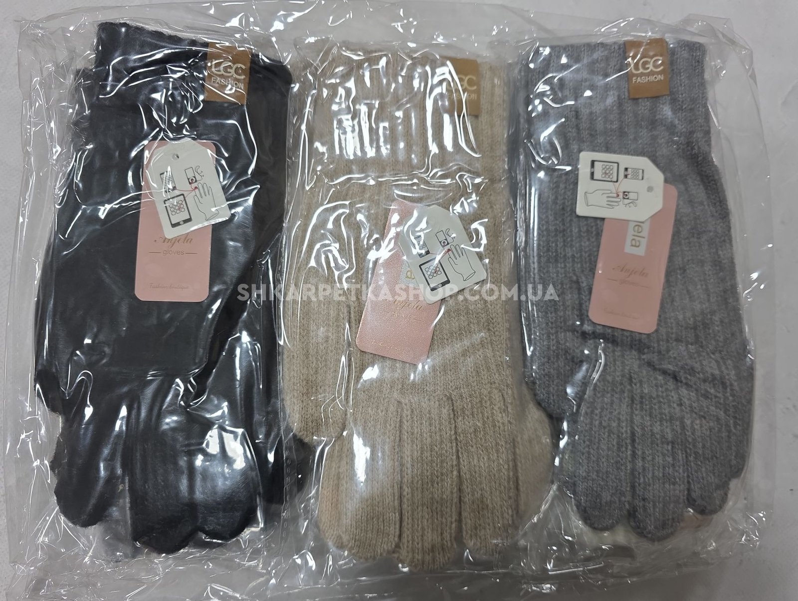 Рукавички жіночі "Anjela" 2202 з начосом +з пальцем для сенсорного екрану, асорті -(Однотонні в рубчик +на манжеті емблема UCC) -уп. 12 шт.