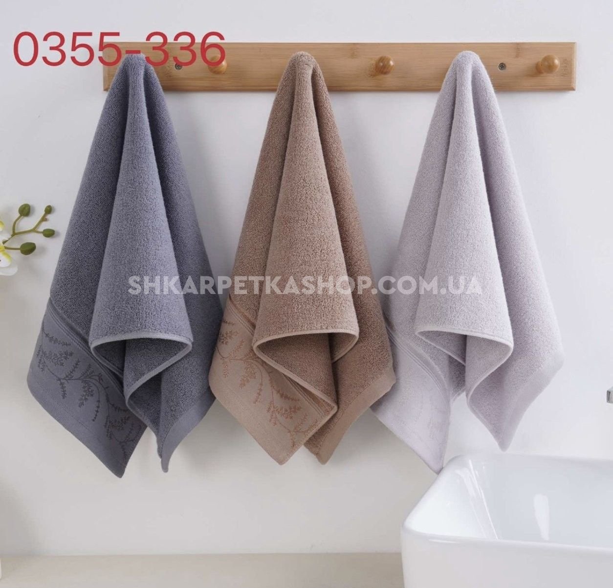Рушник 0355-336 кухонний бавовна -махра, р. 35*75 -уп. 12 шт -(Однотонний +на вставці тоненькі гілочки -кухня)