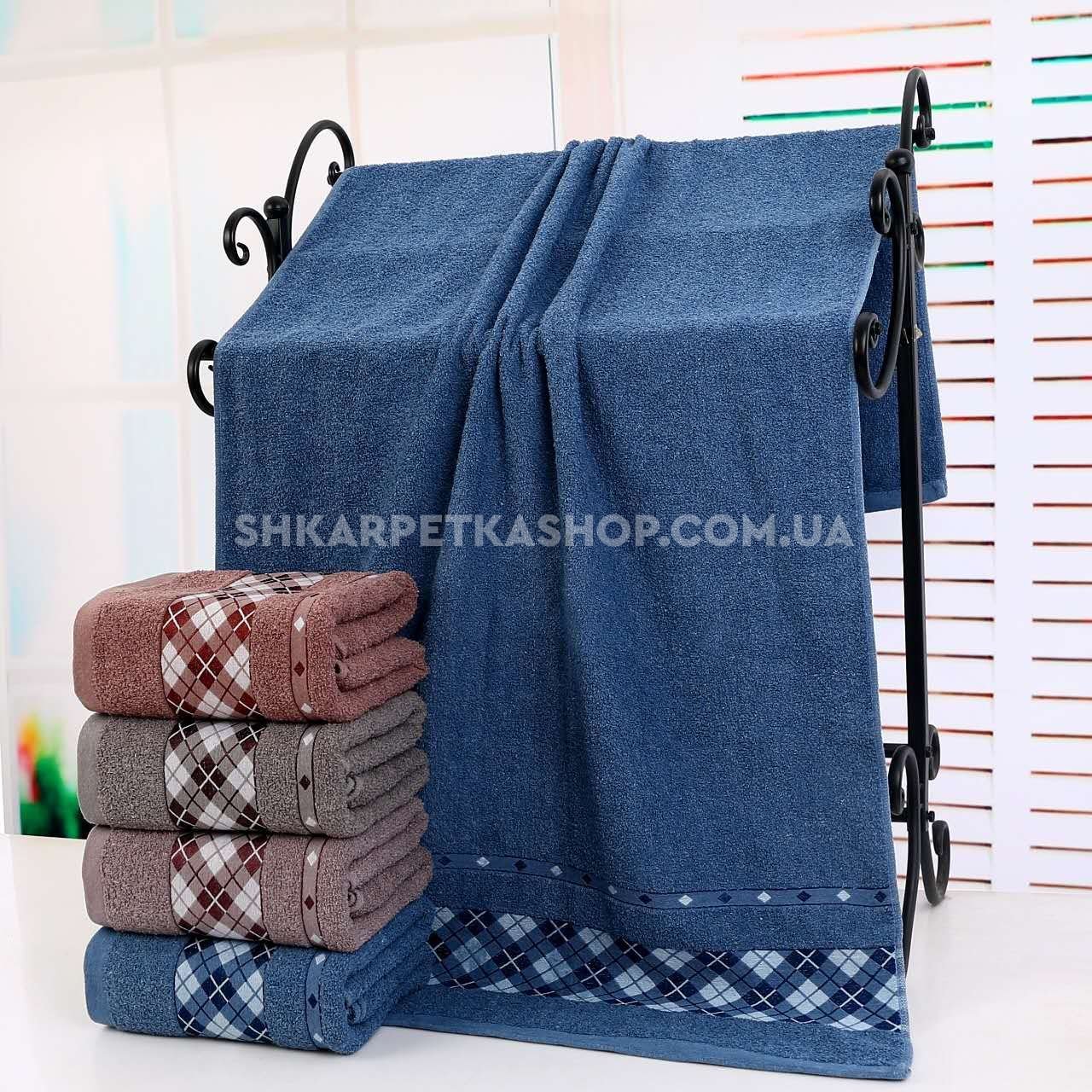 Рушник 2010-А-96 банний cotton -махра, р. 140*70 -уп. 8 шт -(Однотонний +вставка з кольорових ромбів -баня)